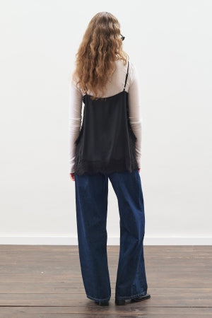 DANTEL ŞERİTLİ ASKILI BLUZ SİYAH