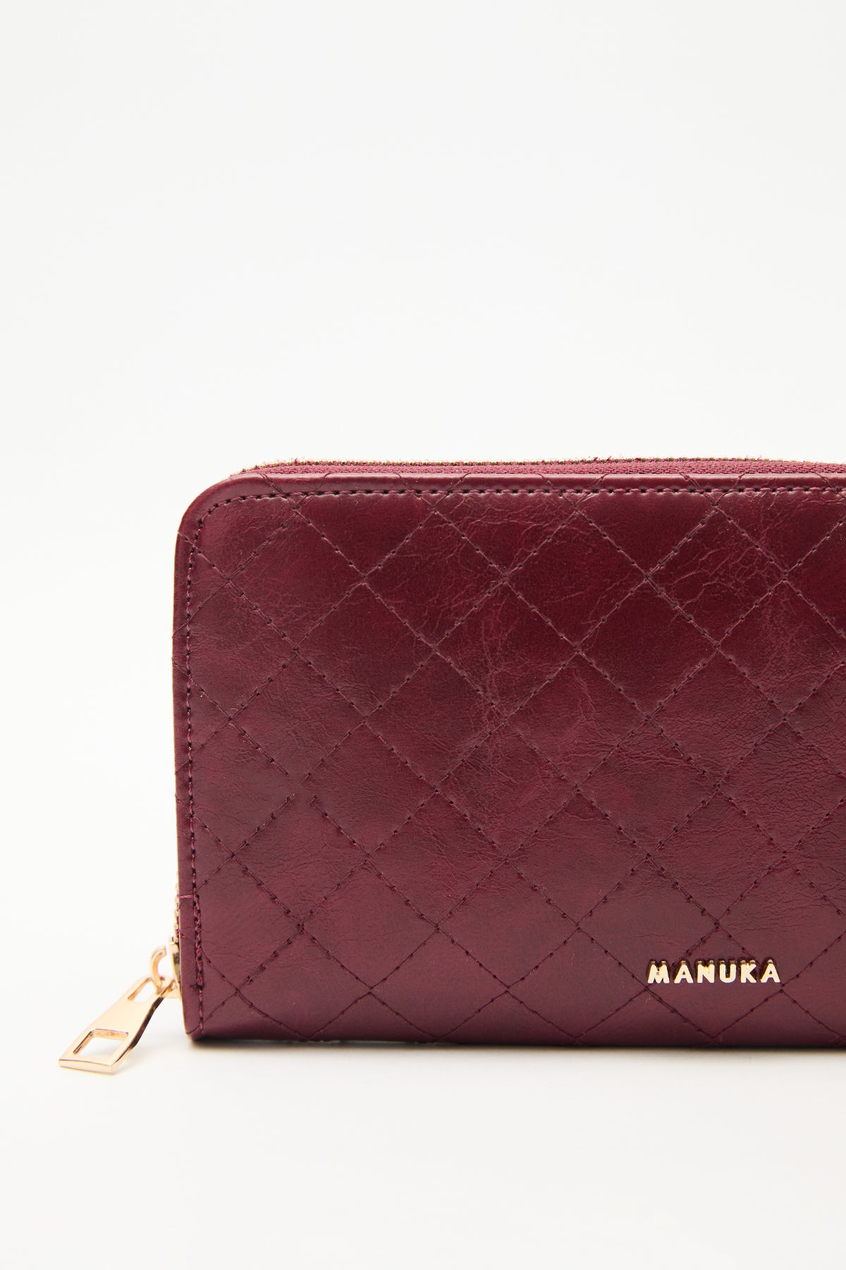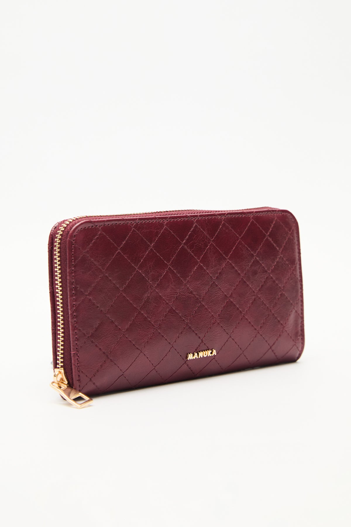 Quilted Zip-Around Wallet Burgundy