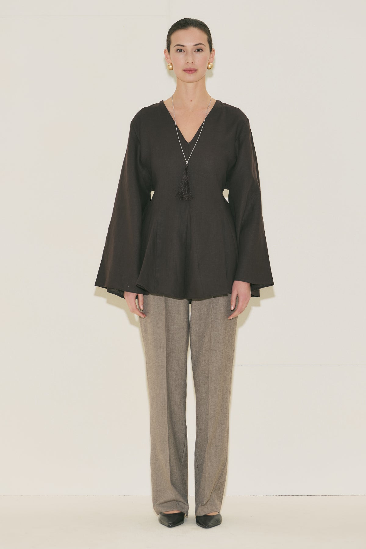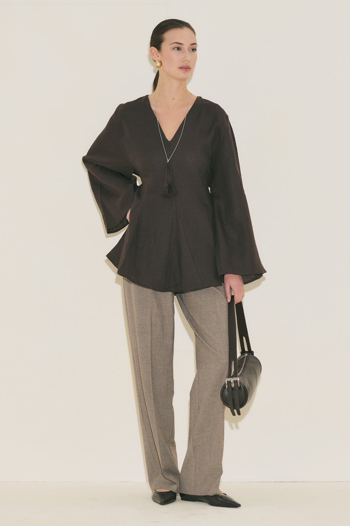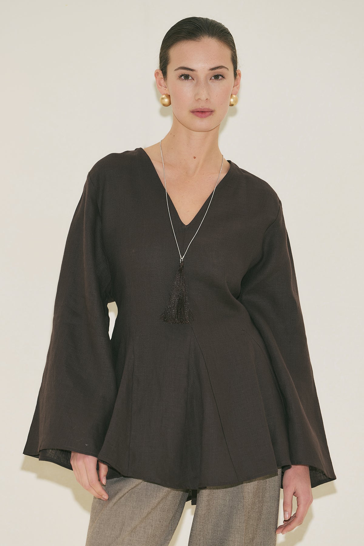100% Linen Voluminous Tunic Dark Brown
