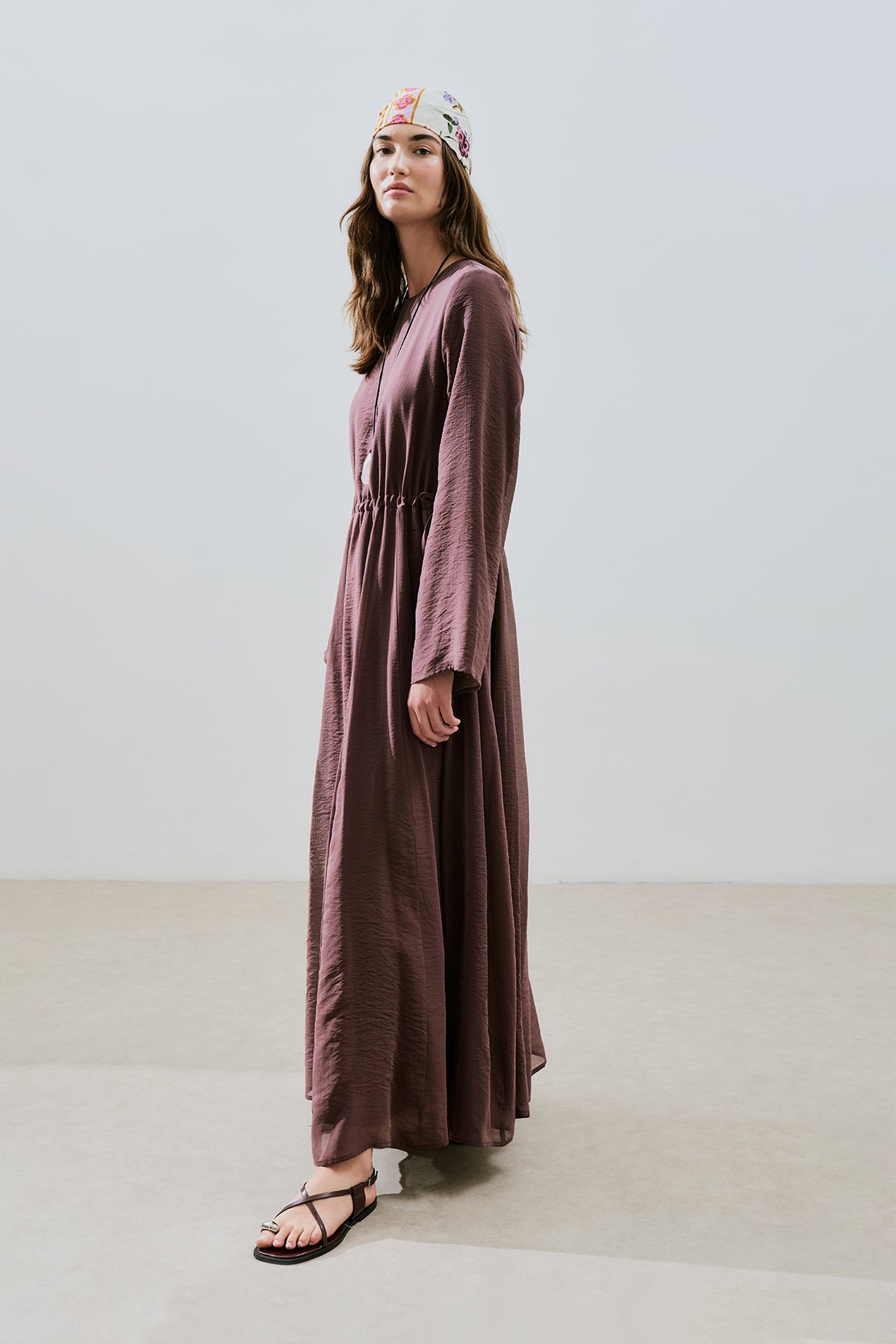 Adjustable Waist Maxi Dress Burgundy