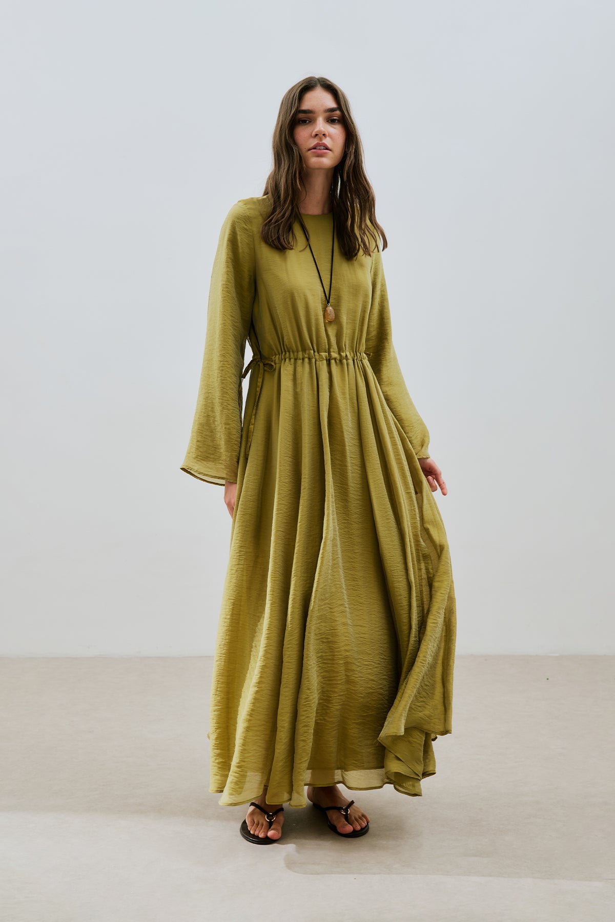 Adjustable Waist Maxi Dress Yellow