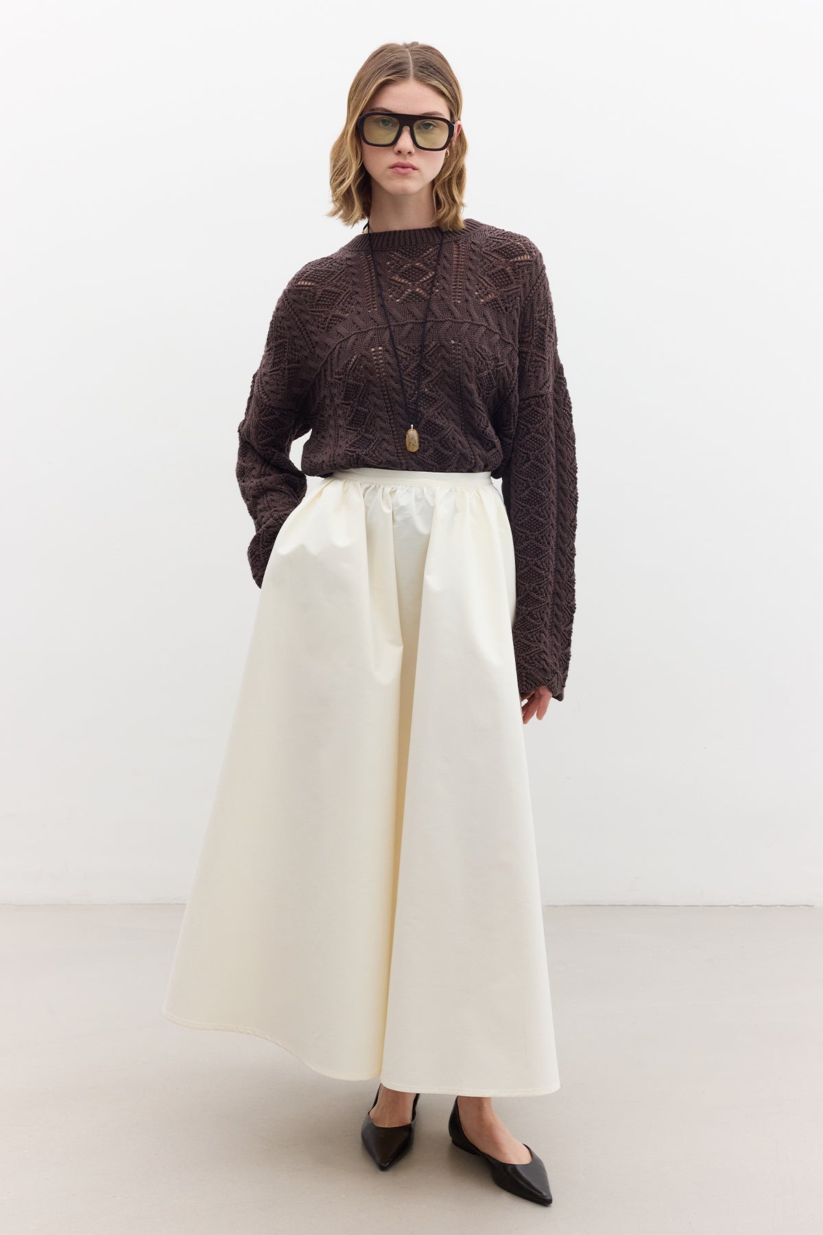 Pointelle Knit Sweater Brown