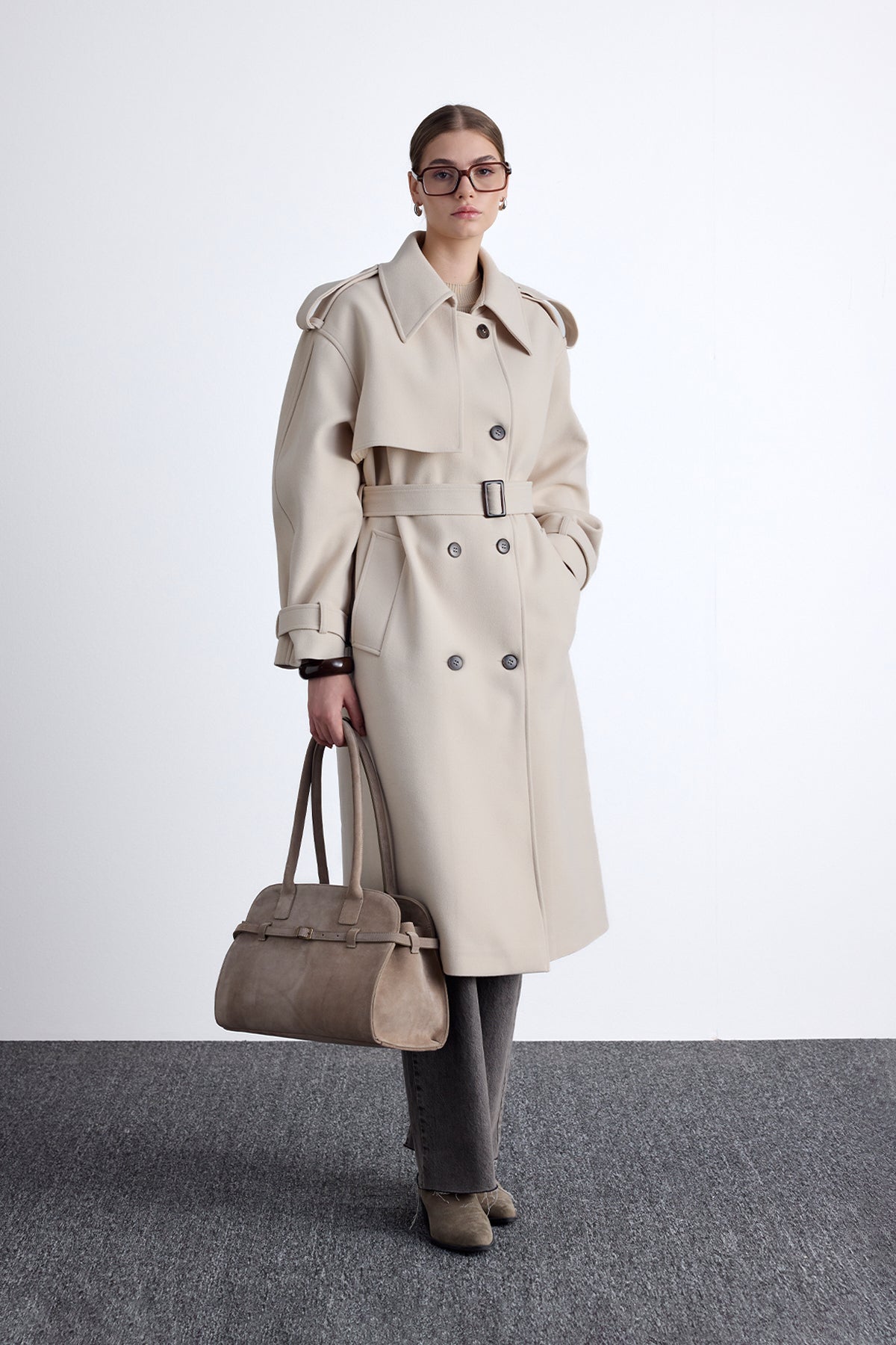 Epaulet Cachet Coat Beige