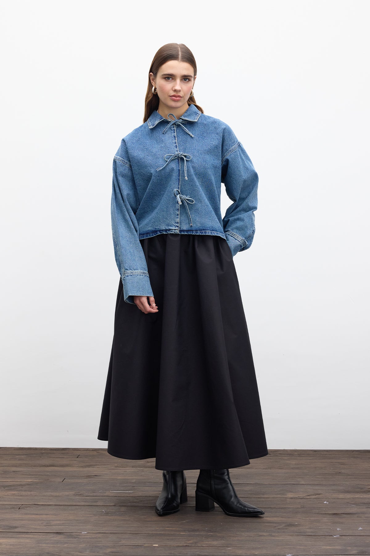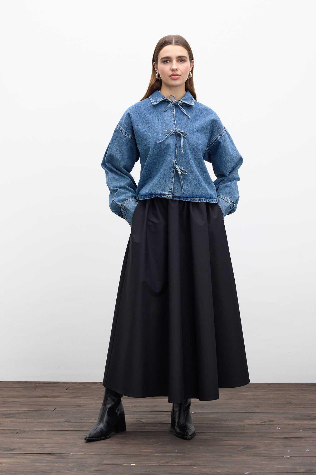 Laced Denim Blouse Blue