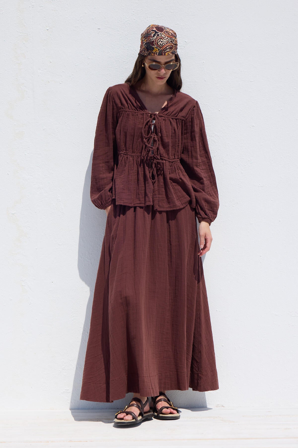 Tie-Detail Muslin Blouse Burgundy