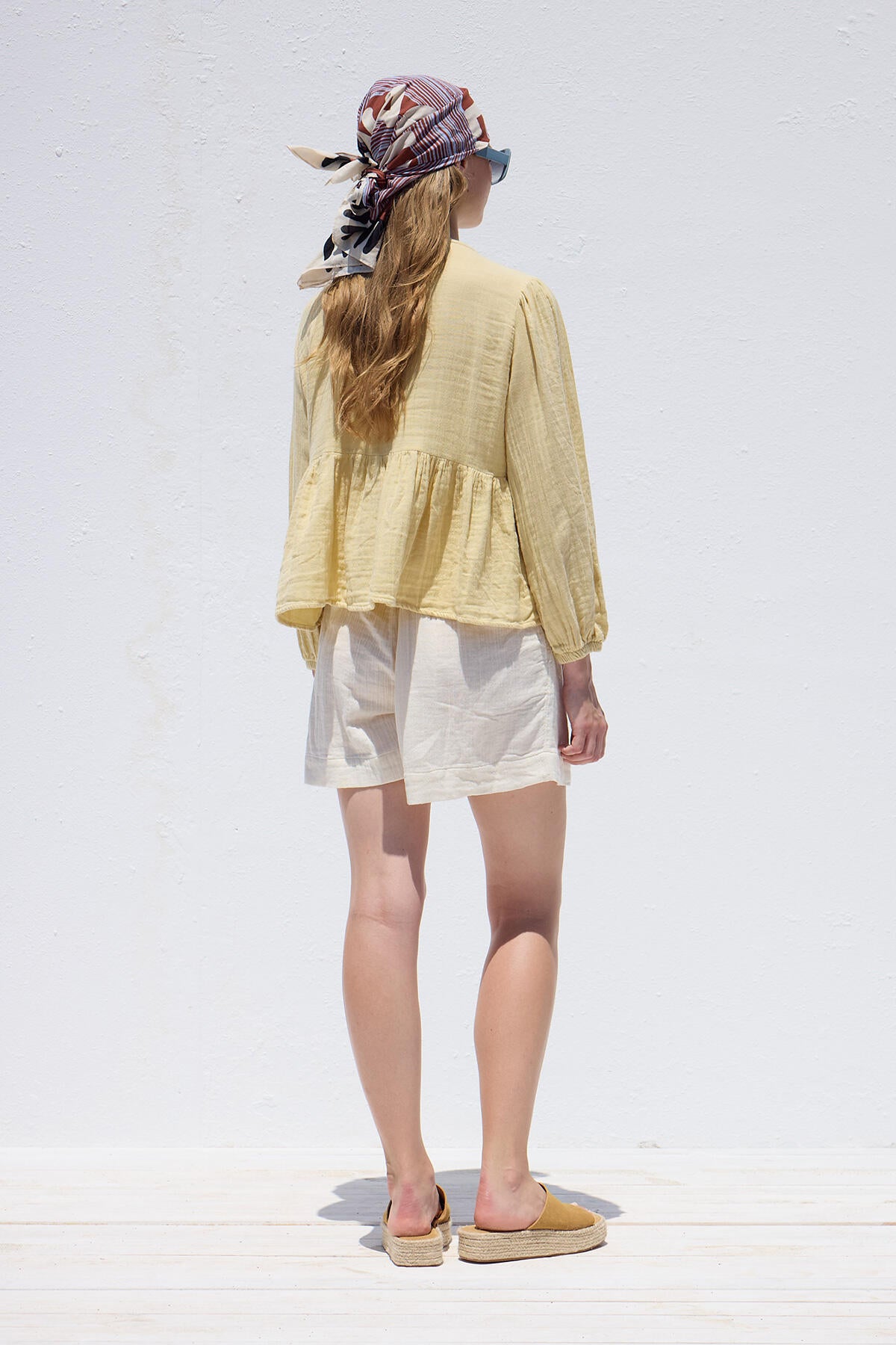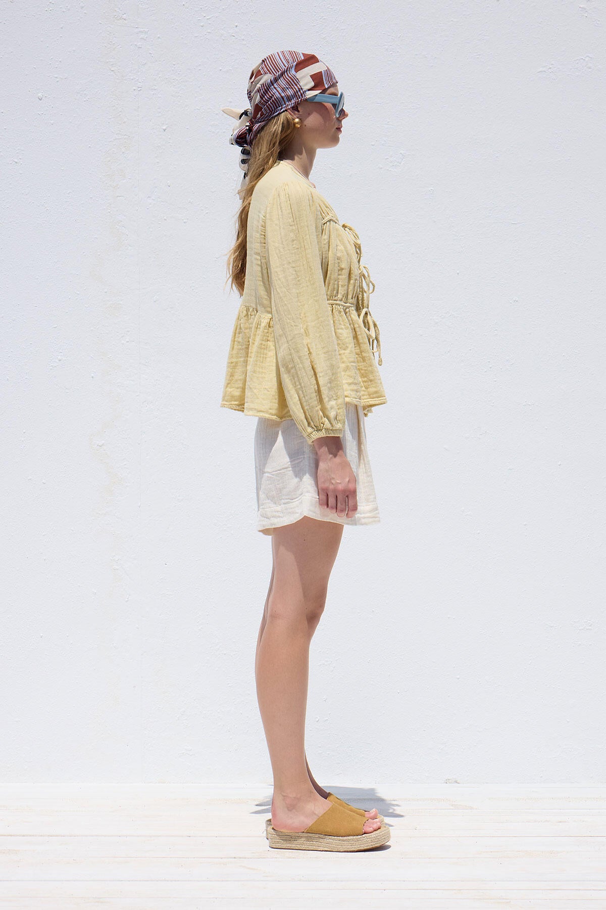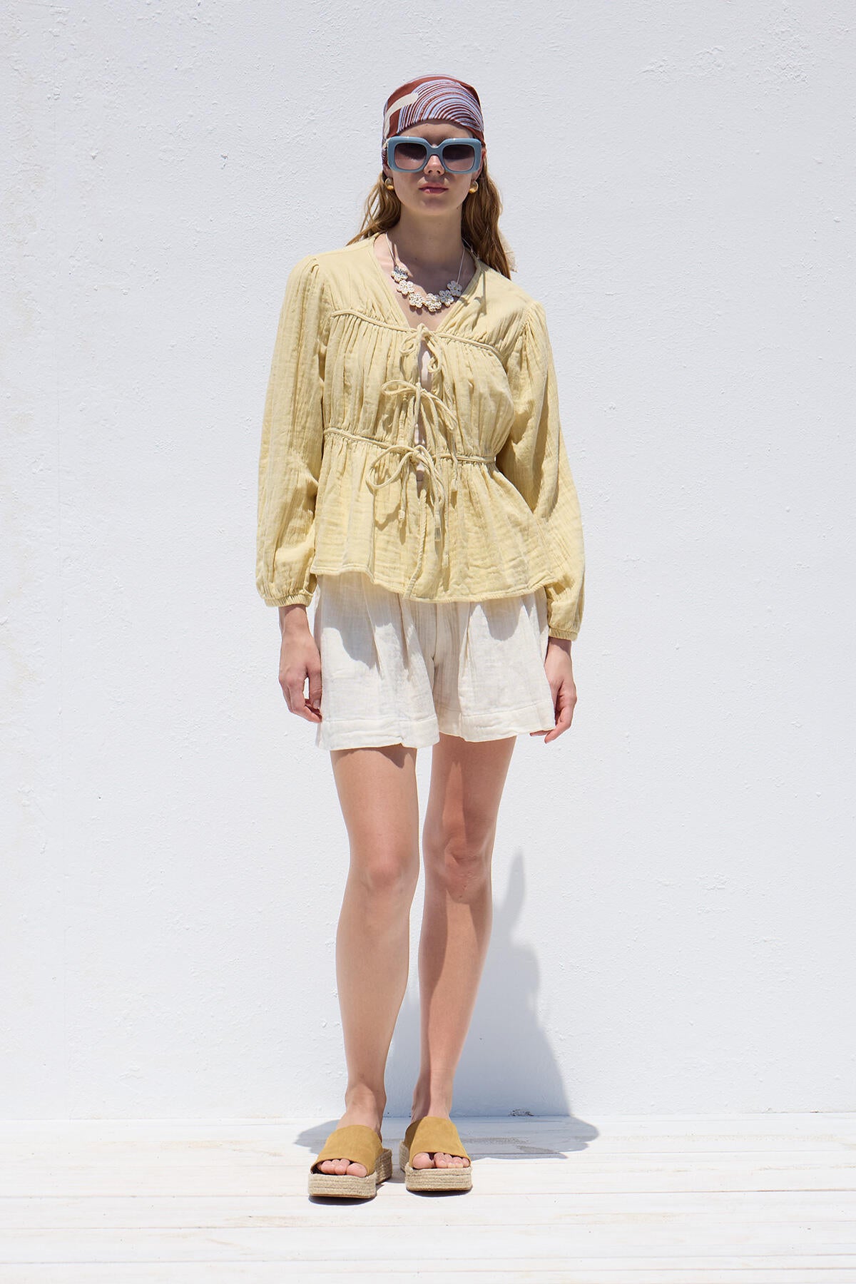 Tie-Detail Muslin Blouse Soft Yellow