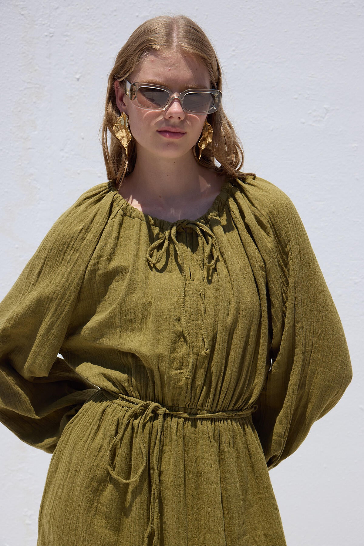 Tie Detail Muslin Dress Green