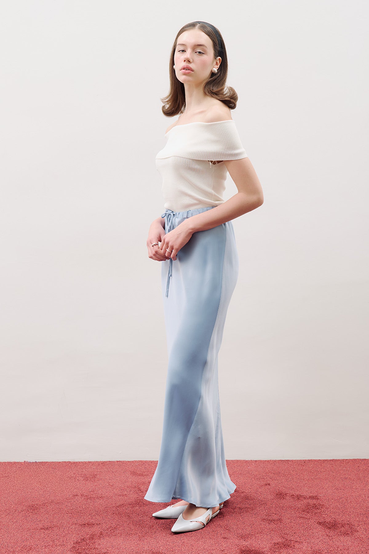 Adjustable Waist Satin Skirt Blue