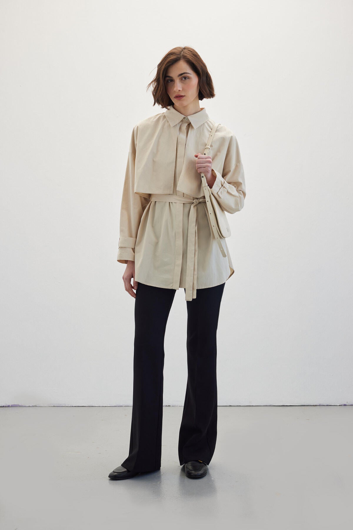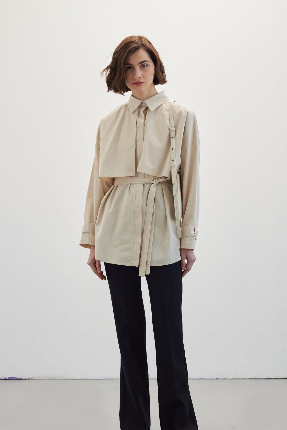 Belted Trench Shirt Beige