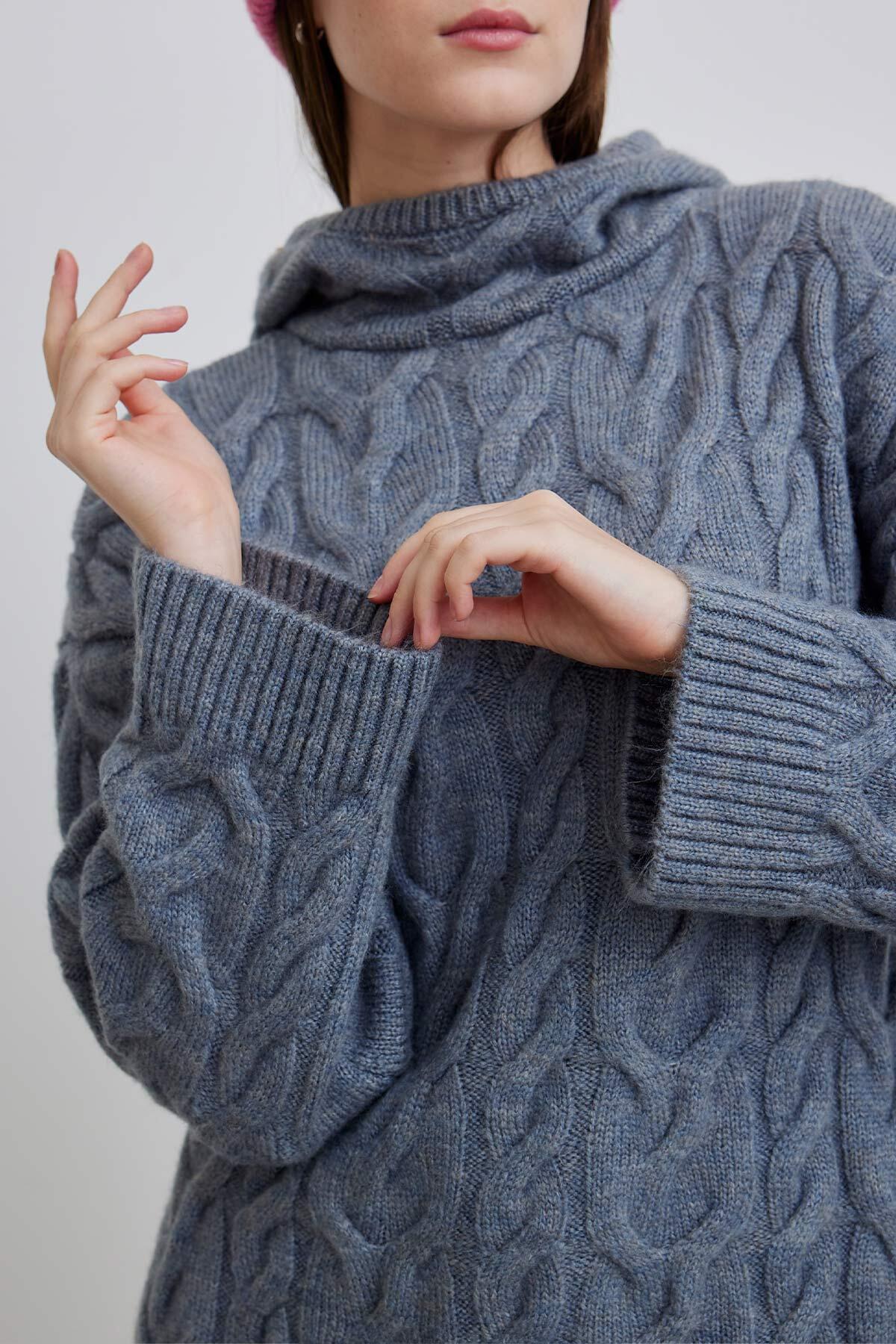 Braided Sweater Hoodie Blue