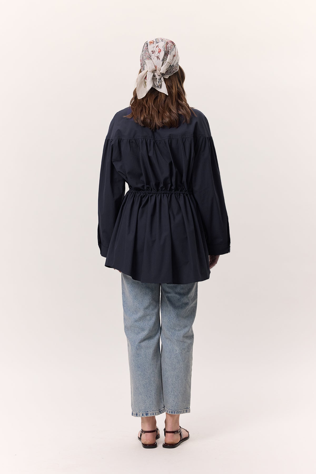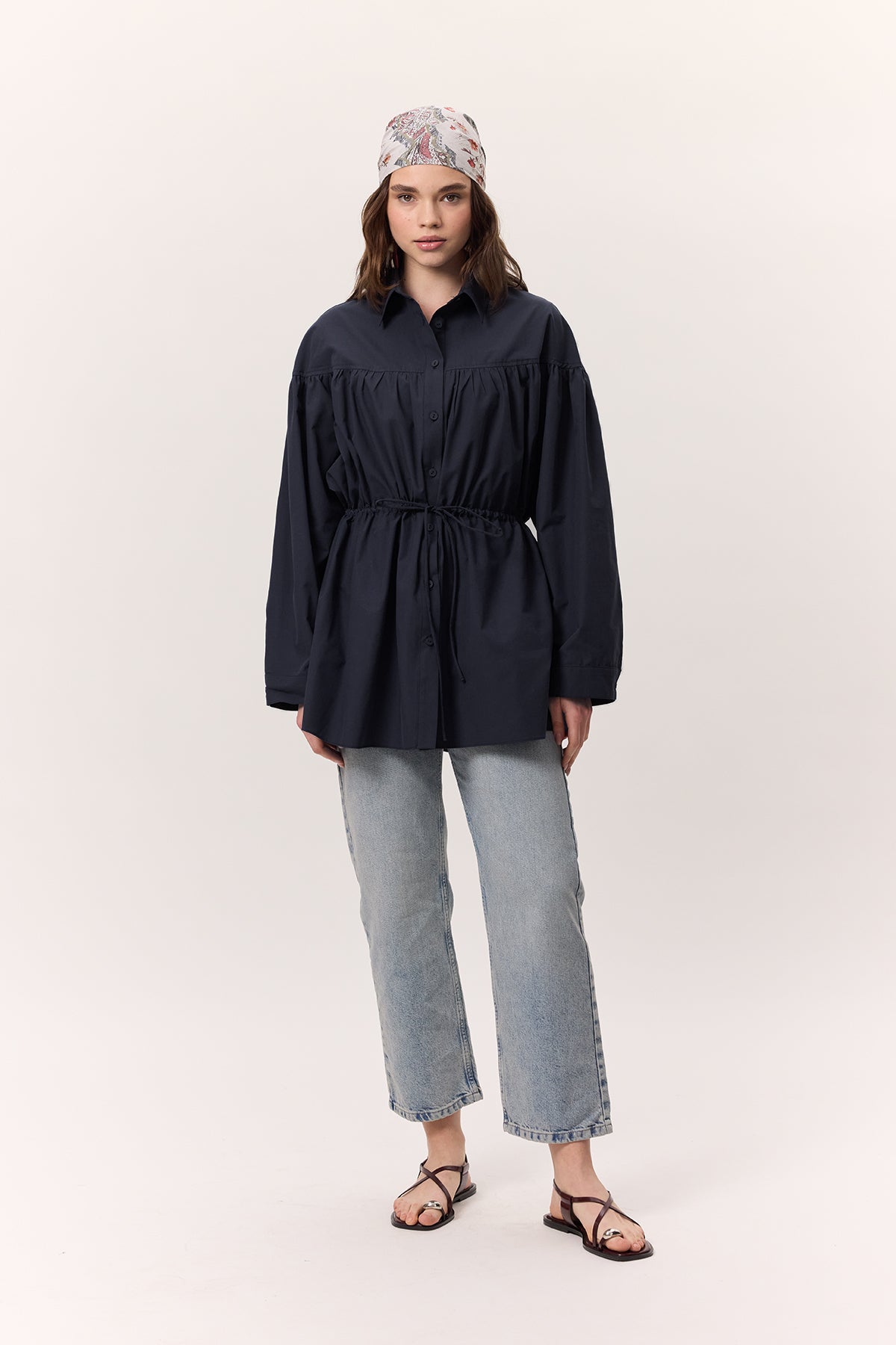 Ruched Tie-Detail Tunic Navy Blue