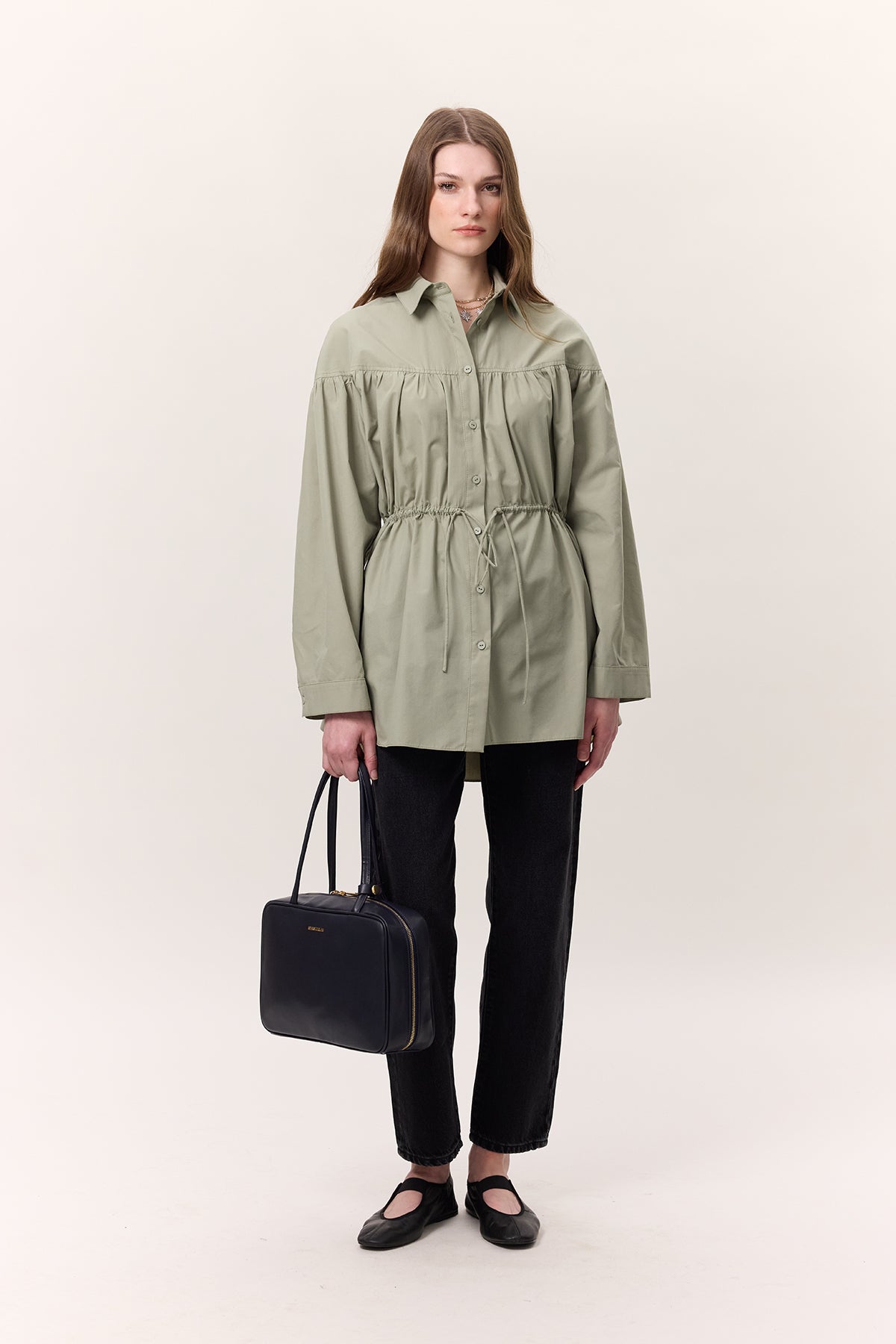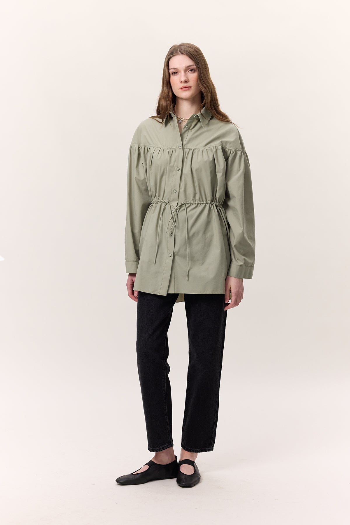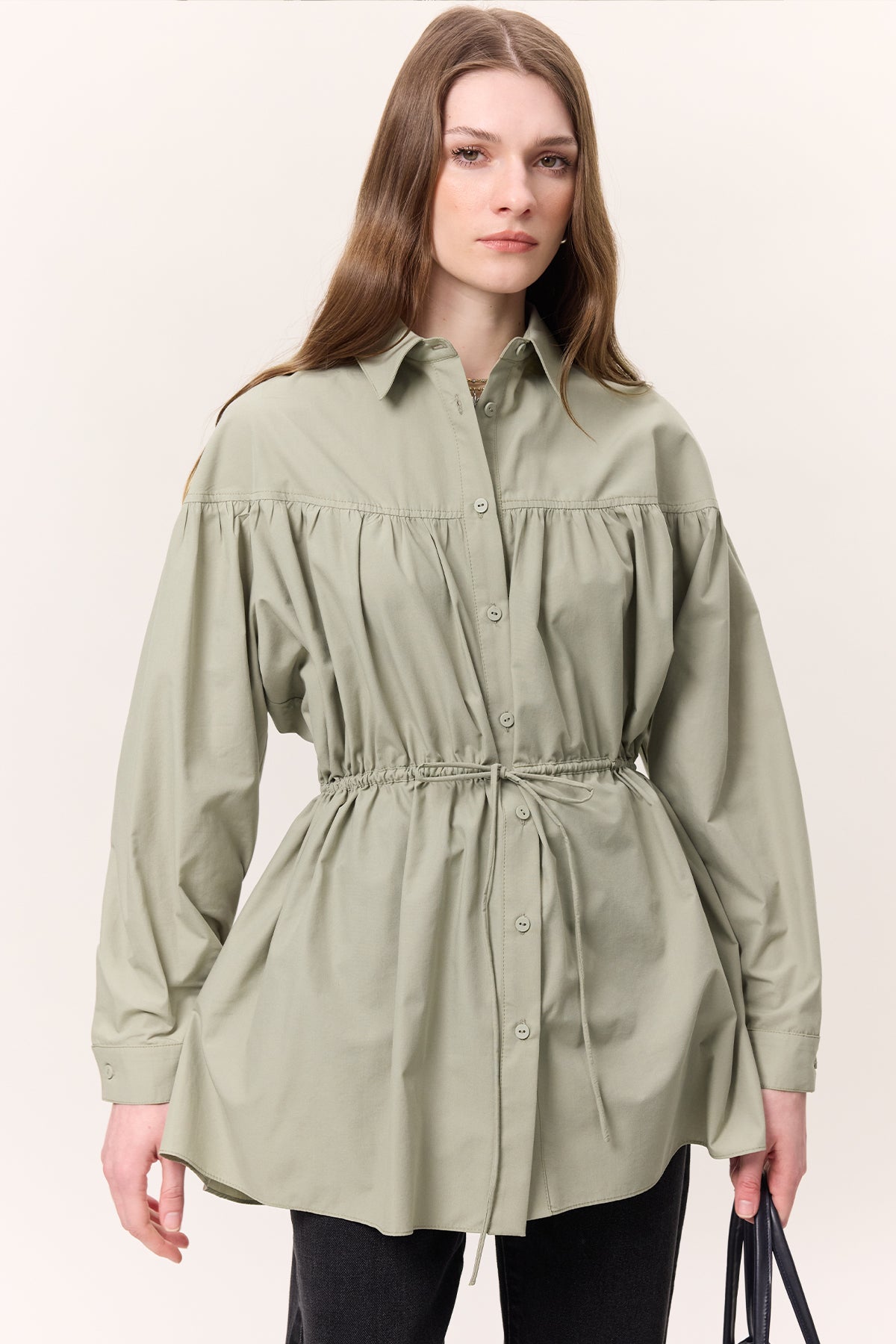 Ruched Tie-Detail Tunic Green
