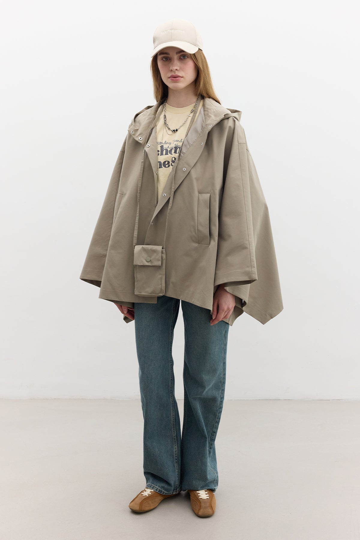 Cape Trench Coat With Bag Detail Pistachio