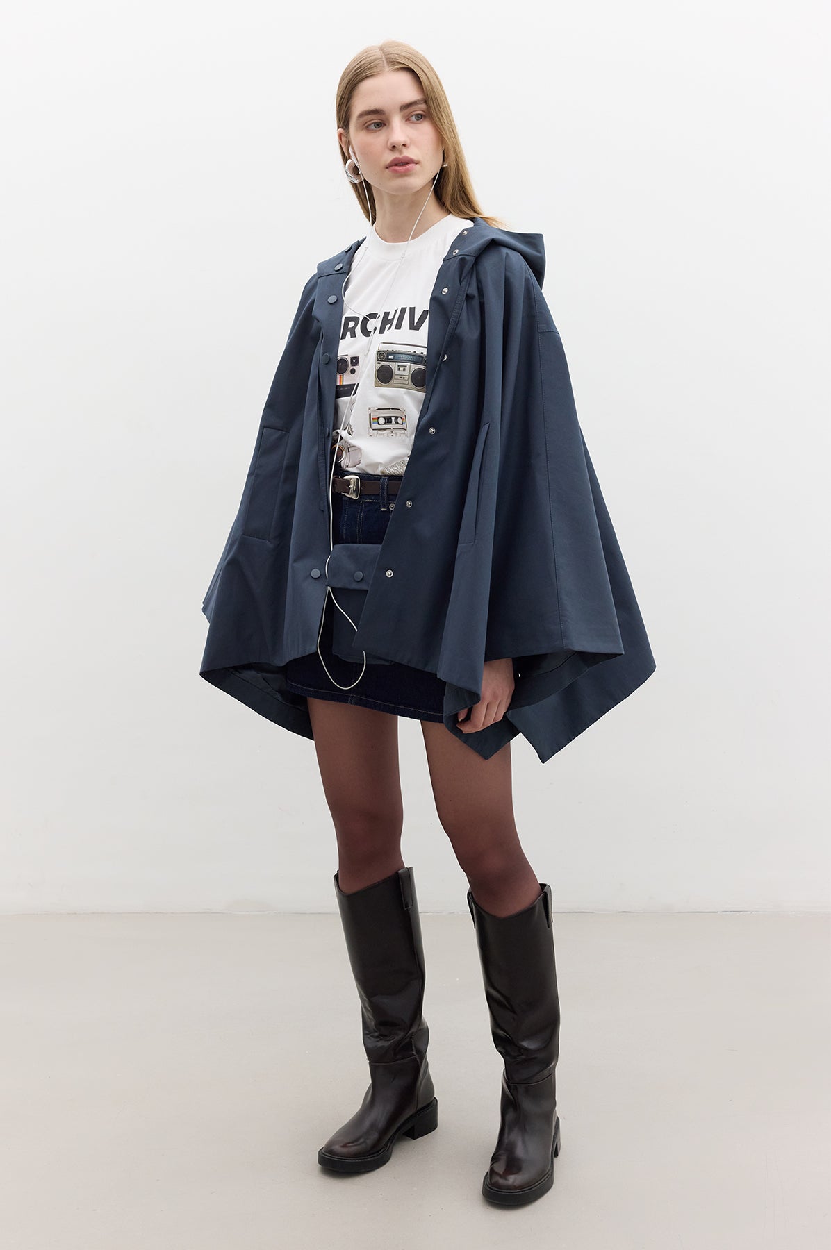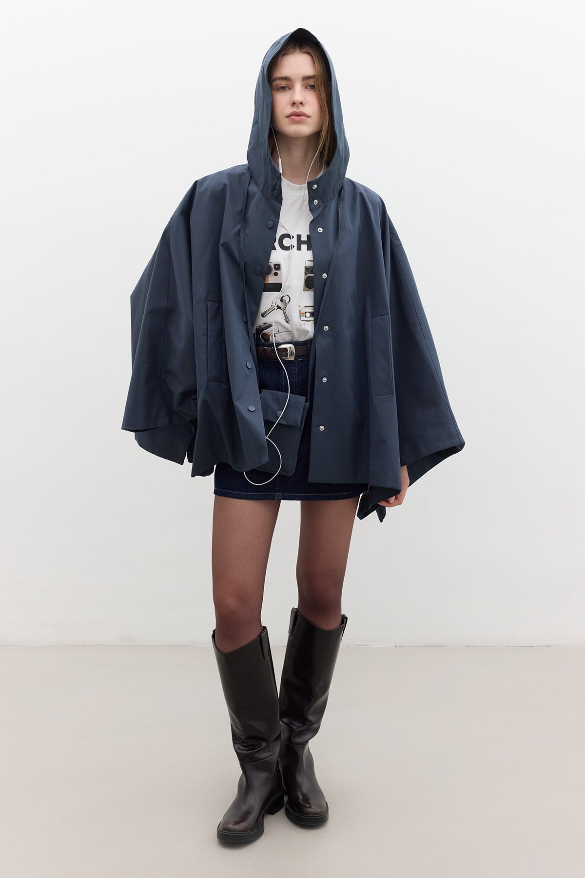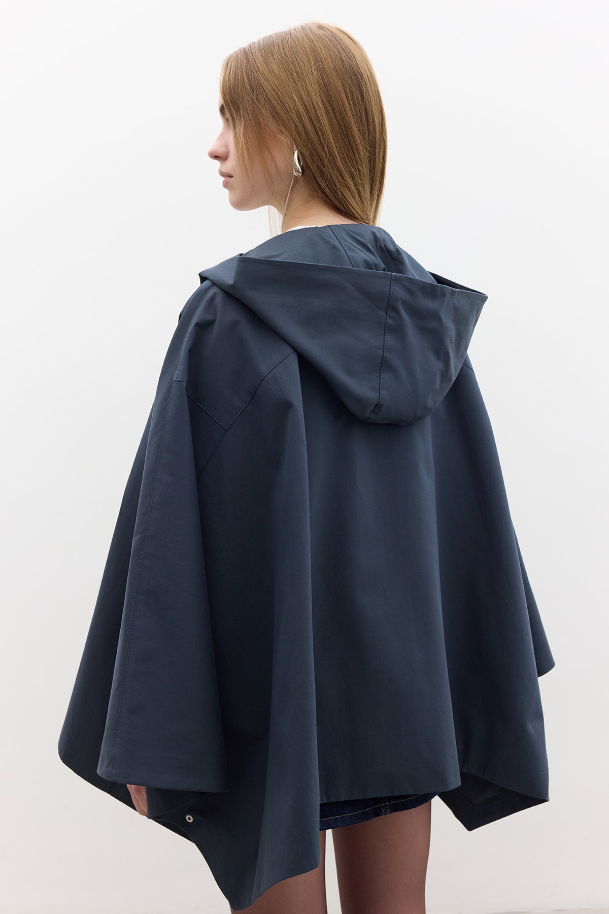 Cape Trench Coat With Bag Detail Navy Blue