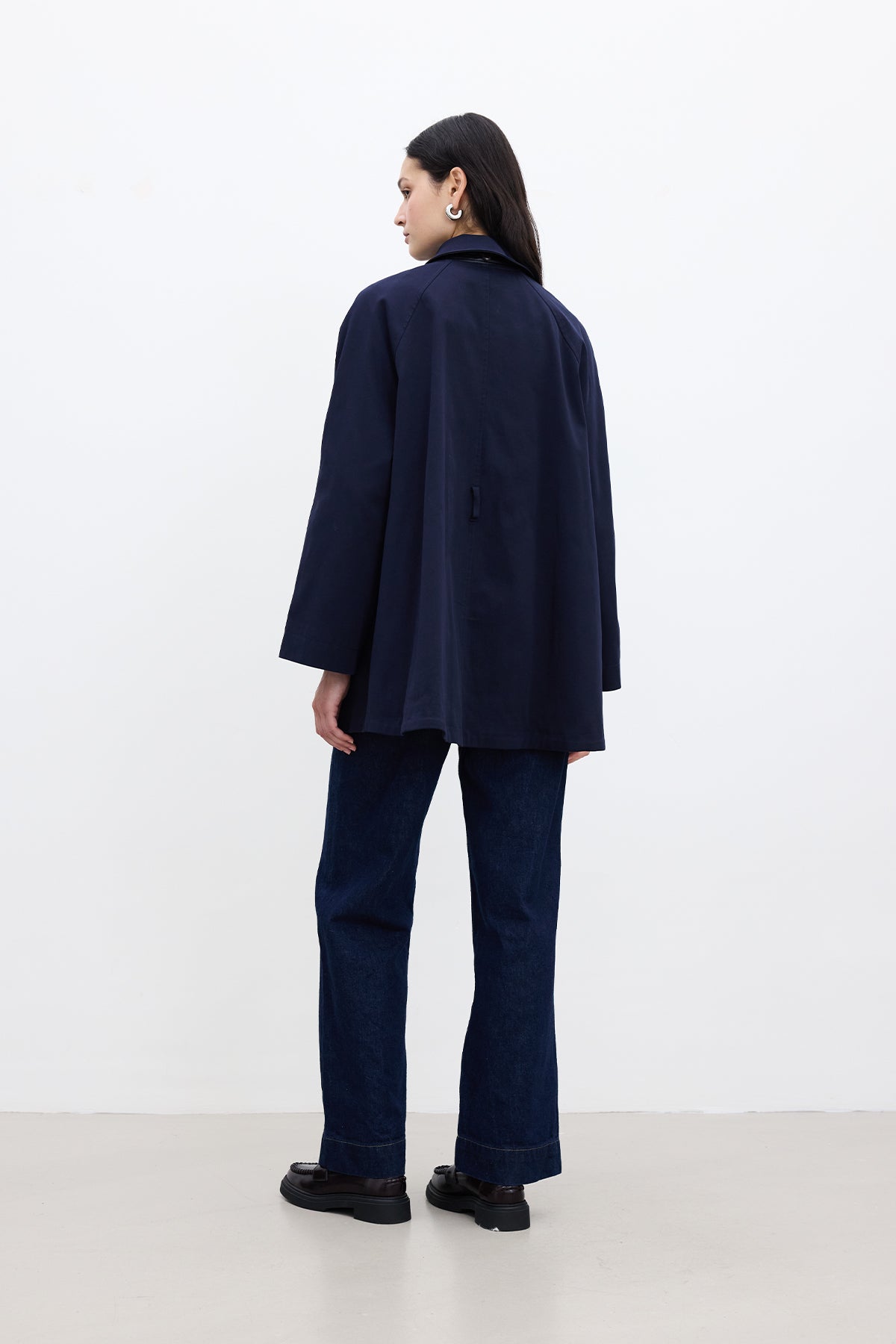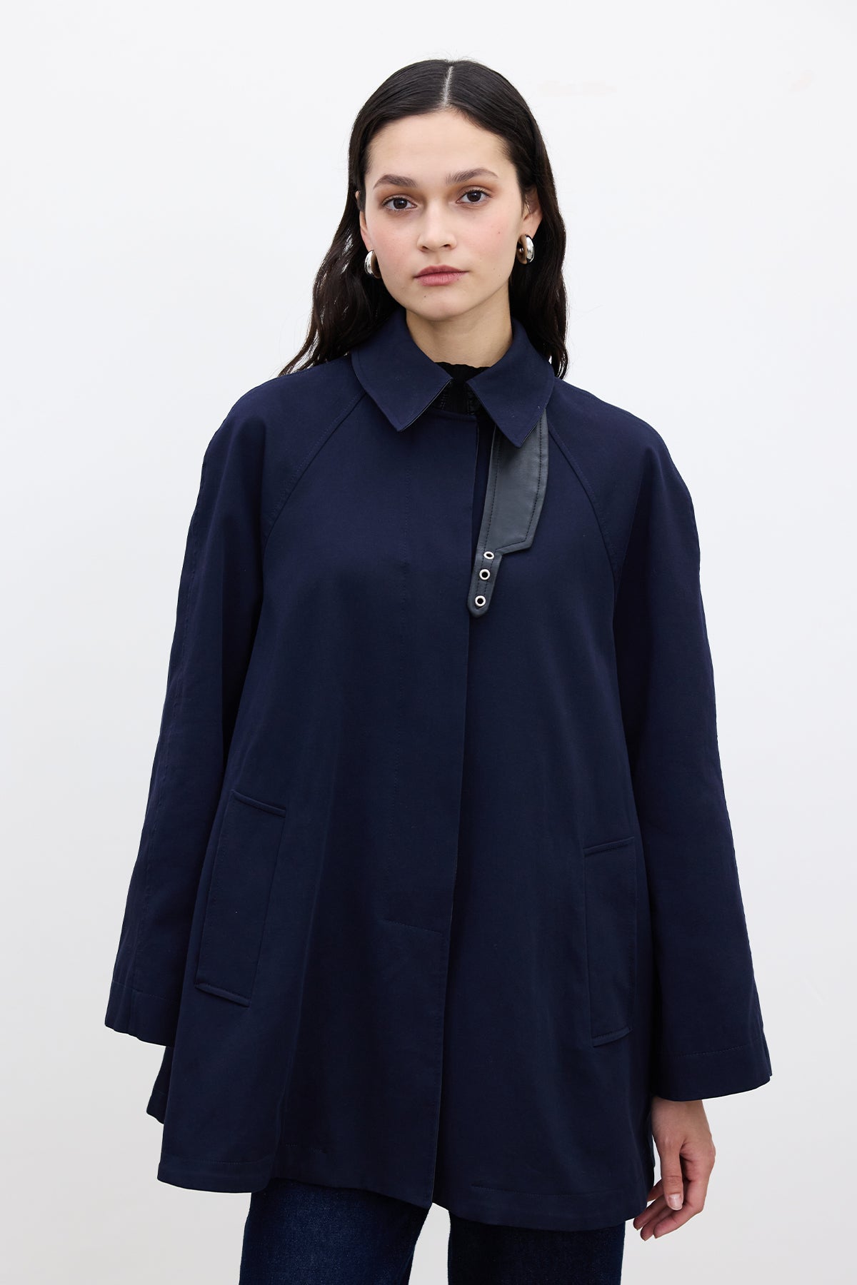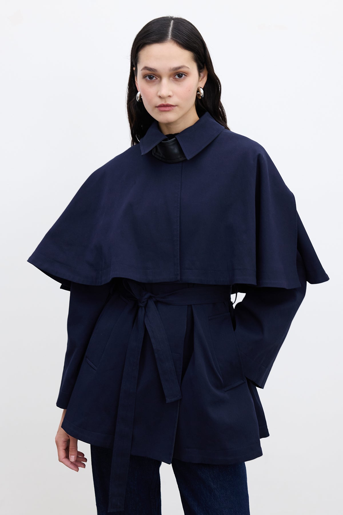 Cape-Detail Trench Coat Navy Blue