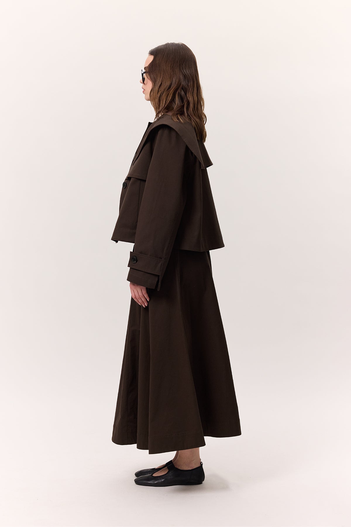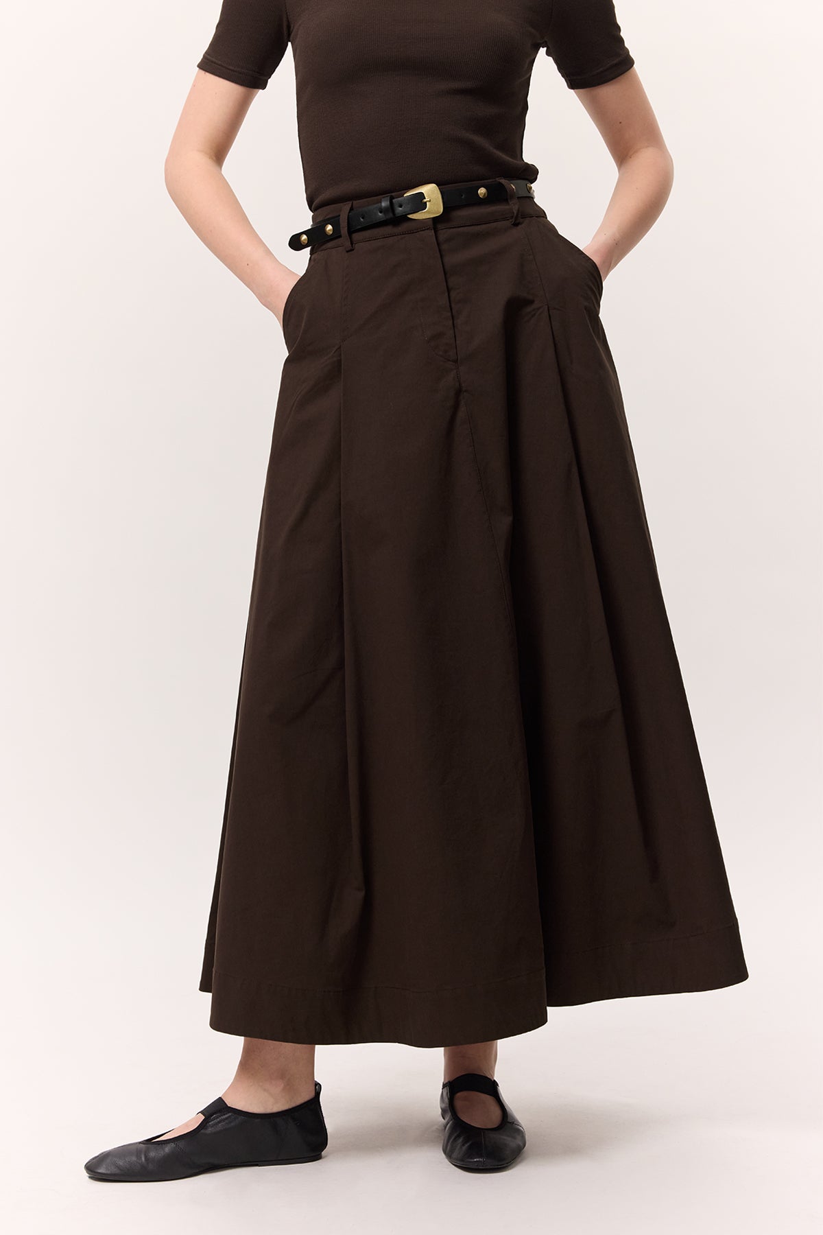 Pocket-Detail Wide Skirt Brown