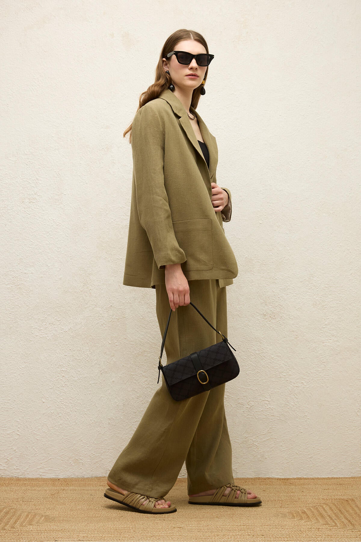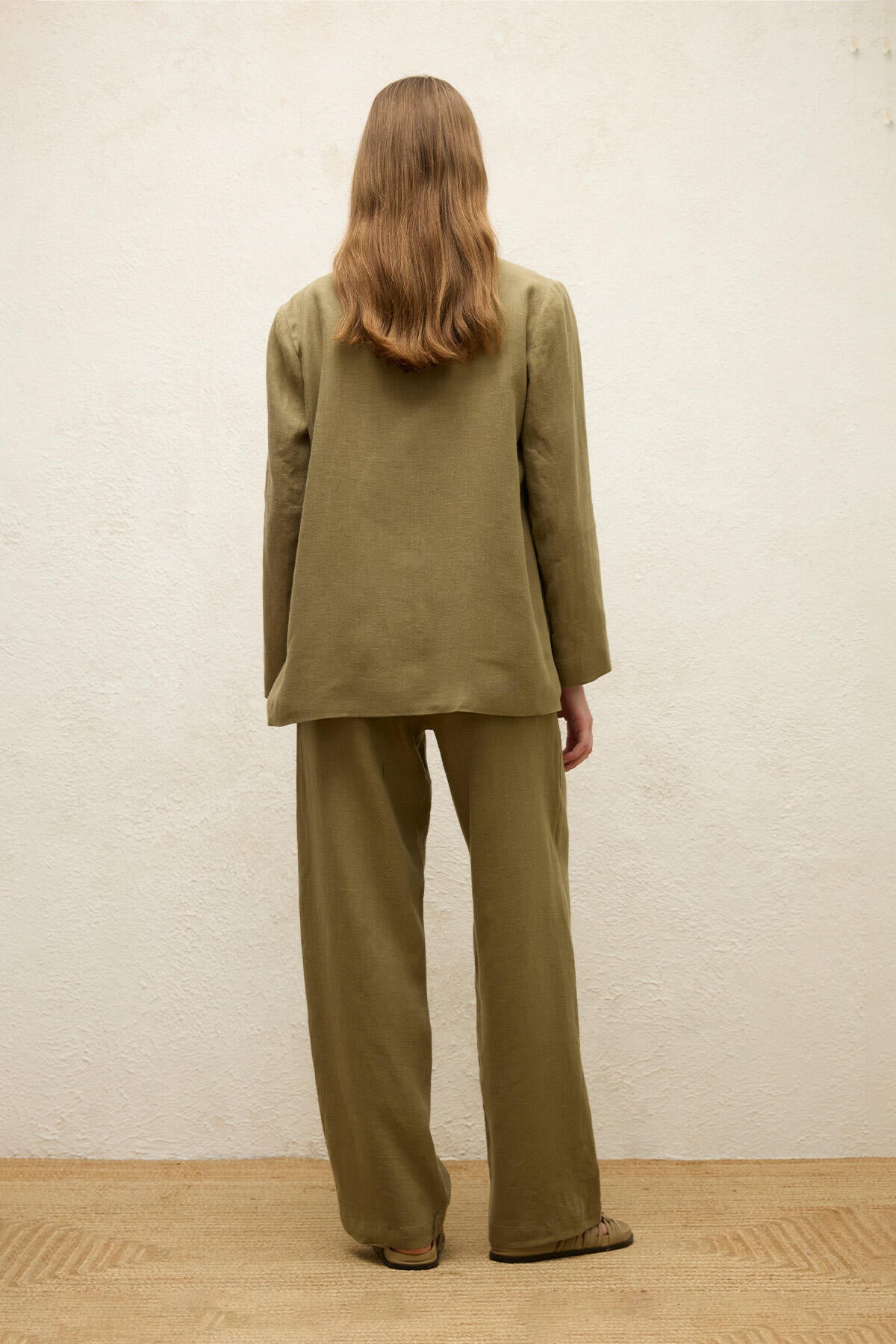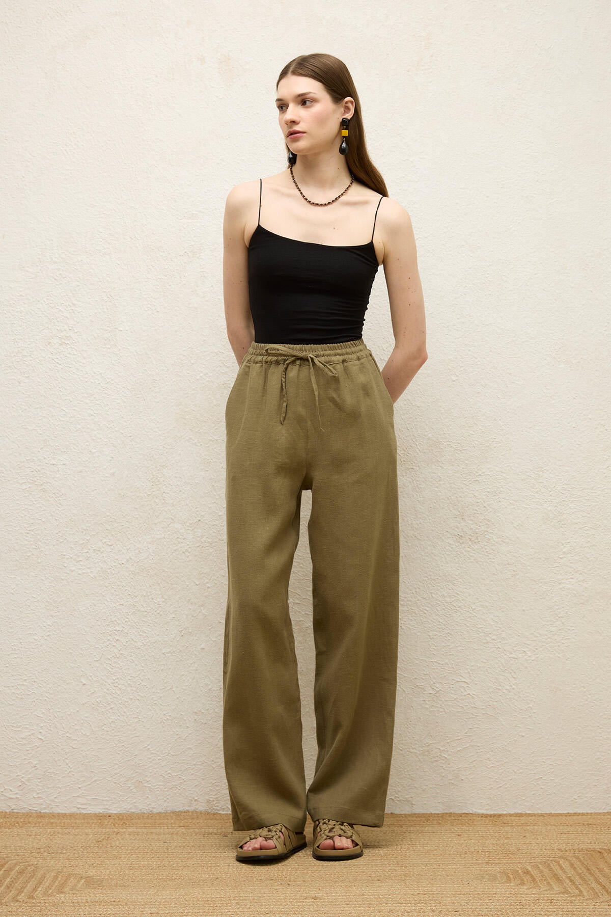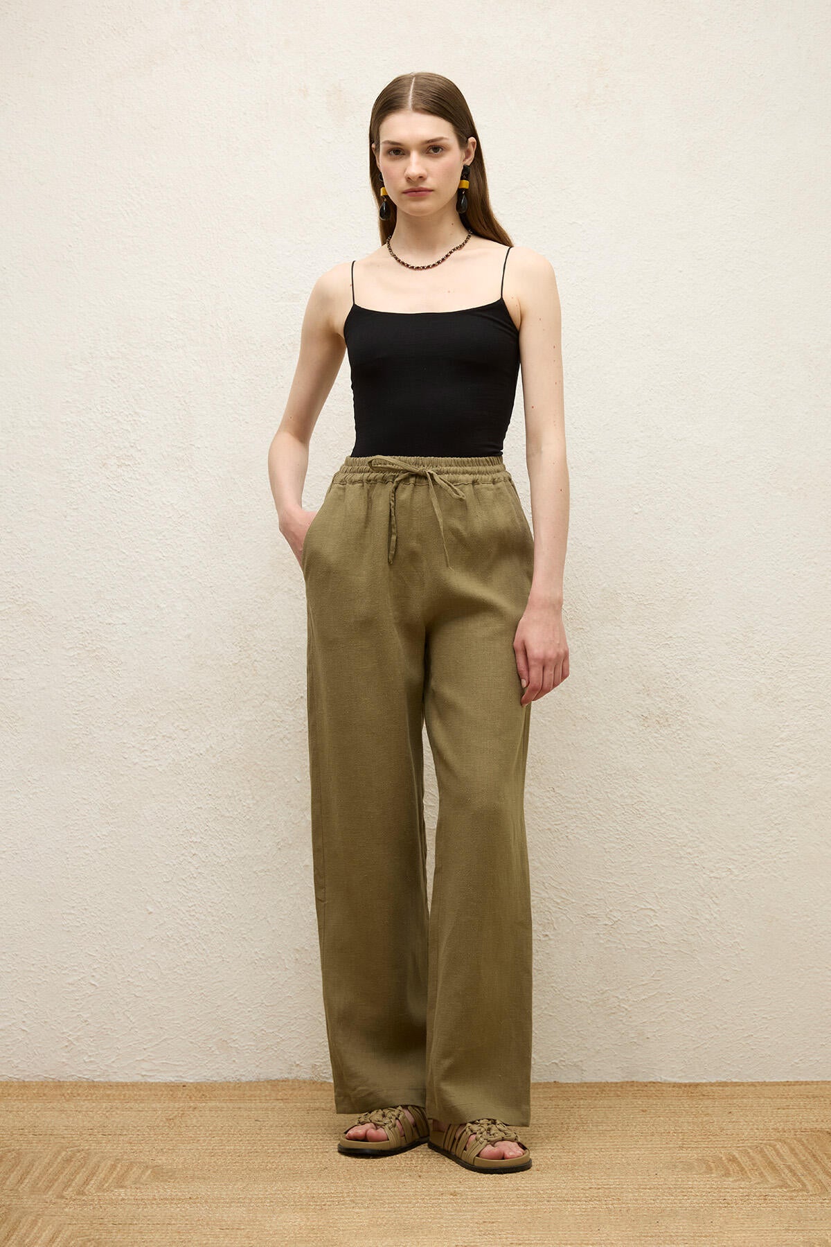 These high-waisted, full-length pants feature side pockets and wide legs. Made from 100% linen fabric.