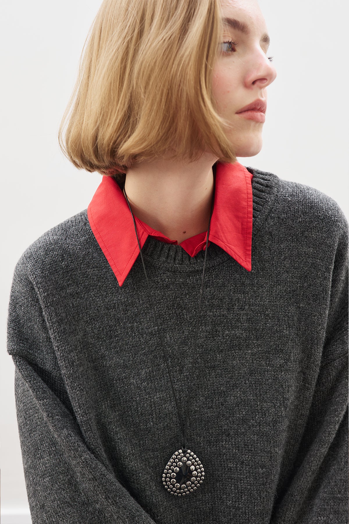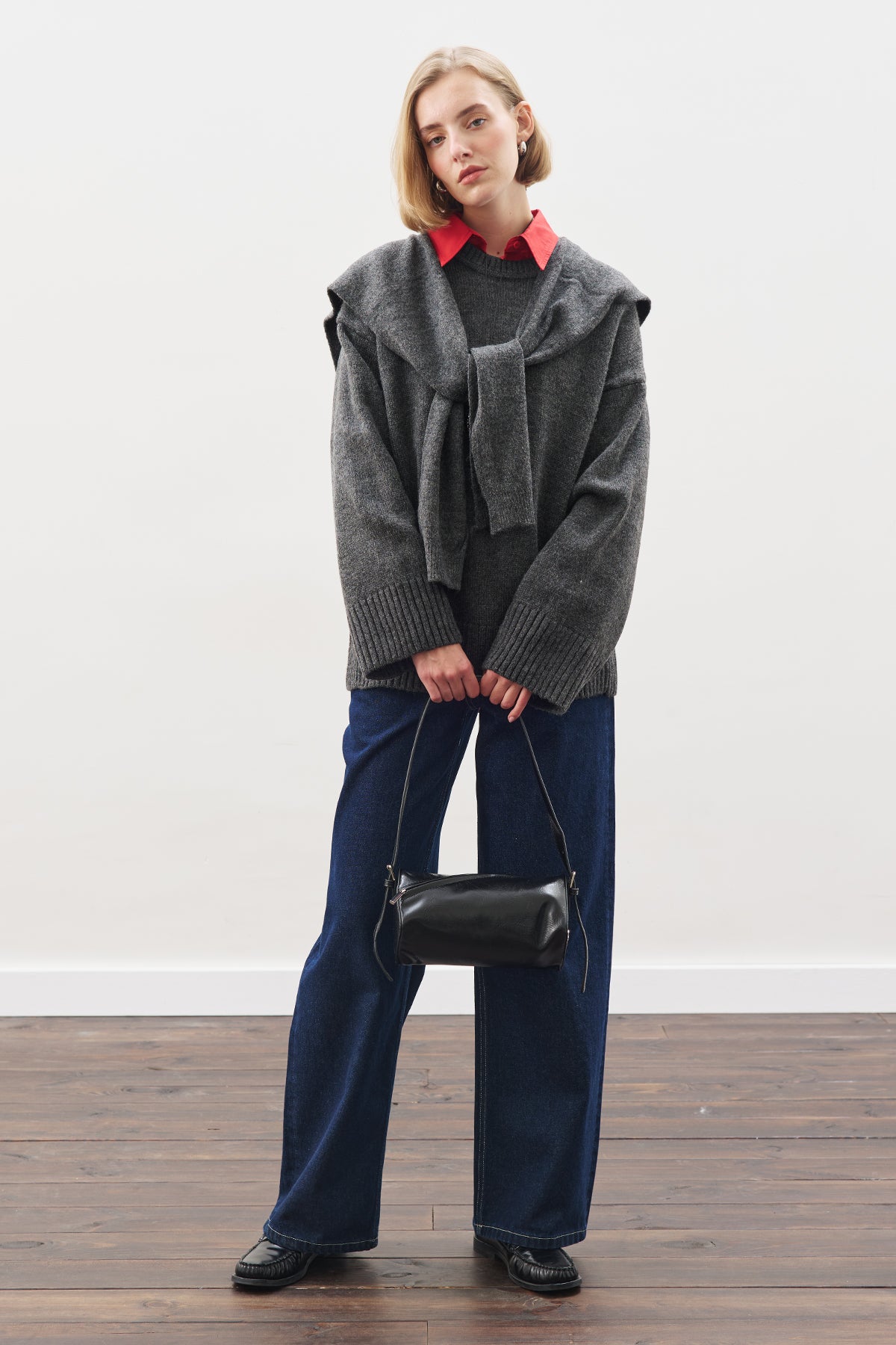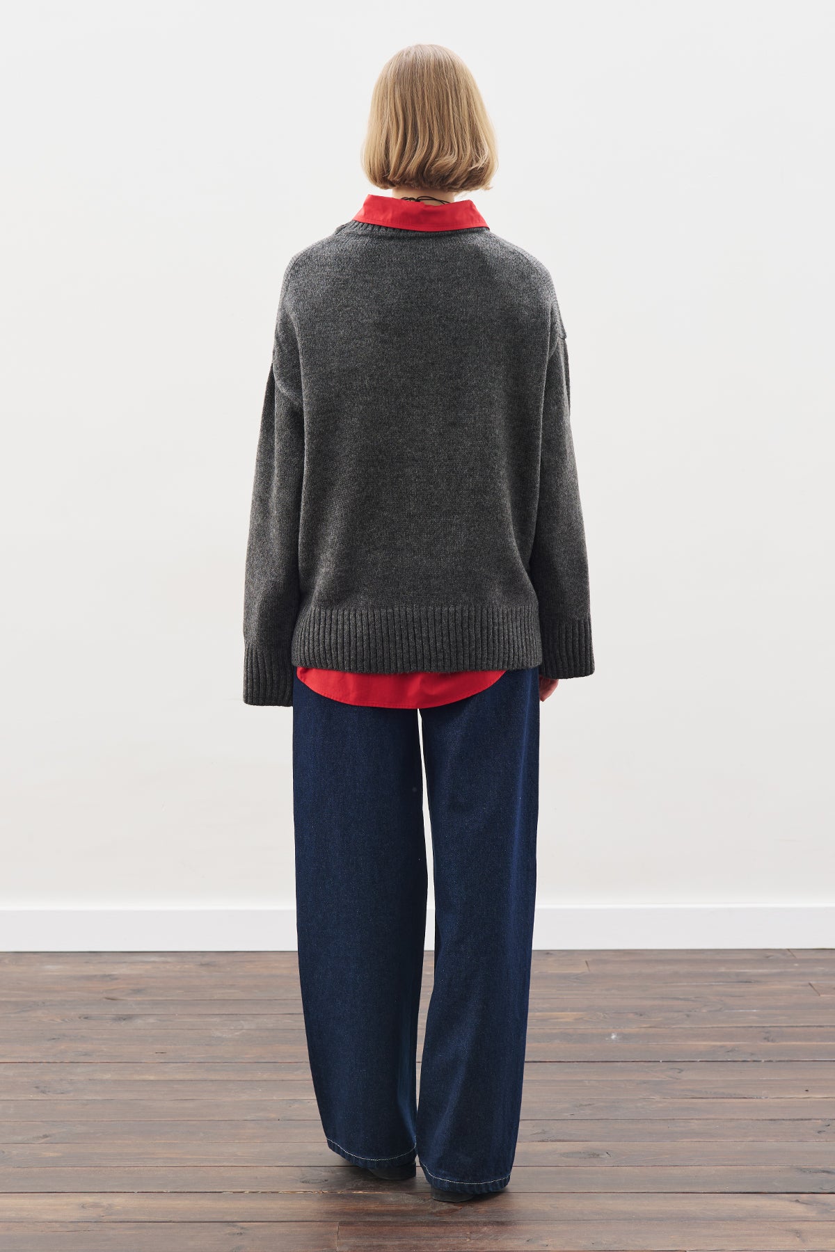 Yuvarlak yaka, uzun kol,ara boy, oversız kalıp.