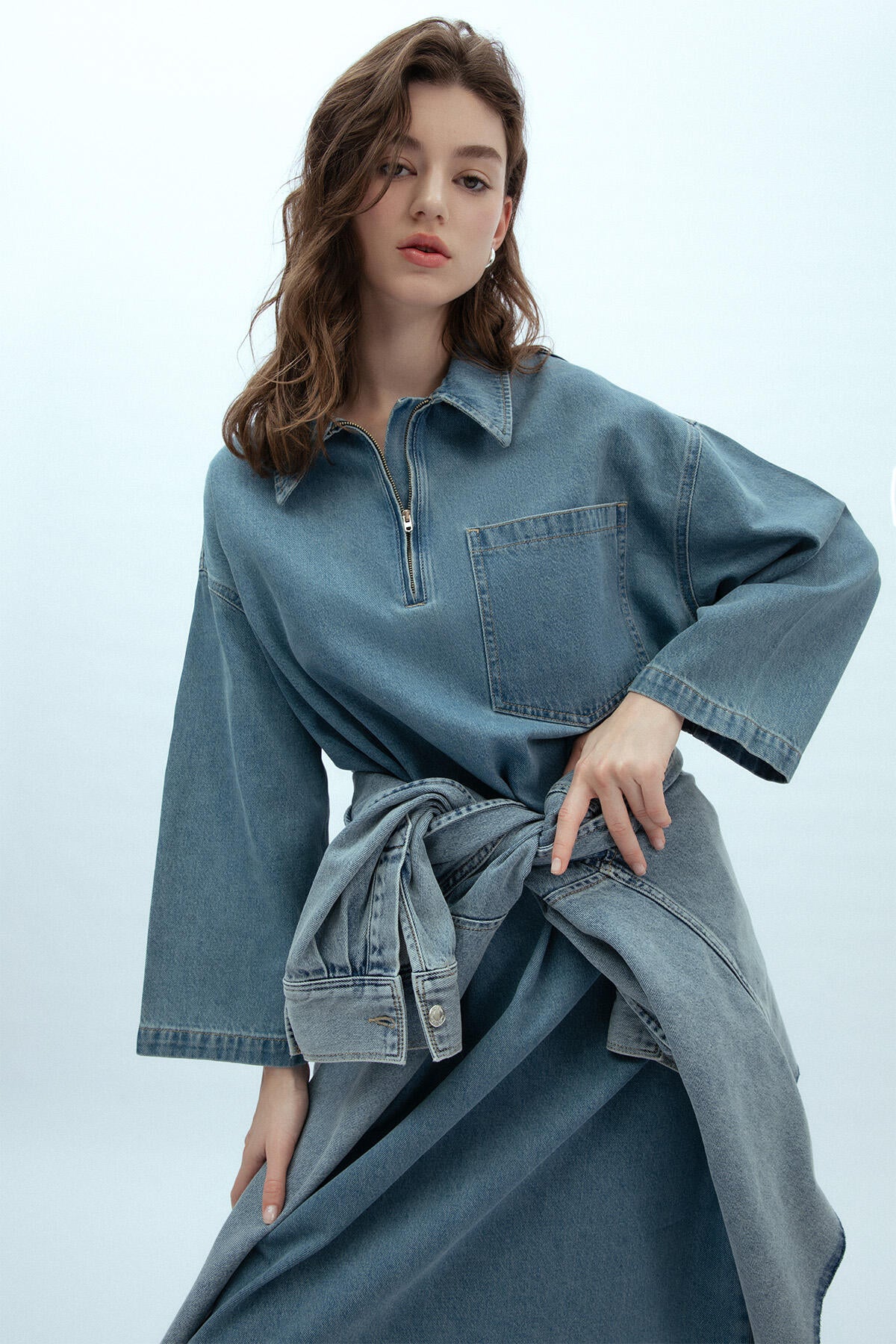 Collar Detail Denim Dress Blue