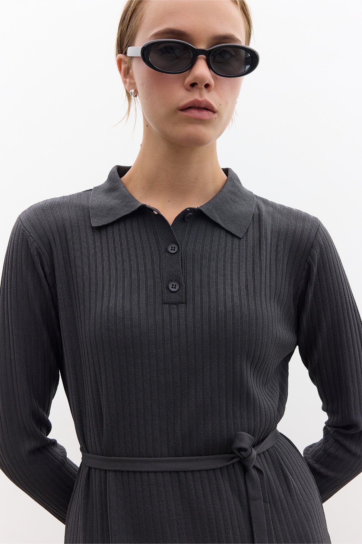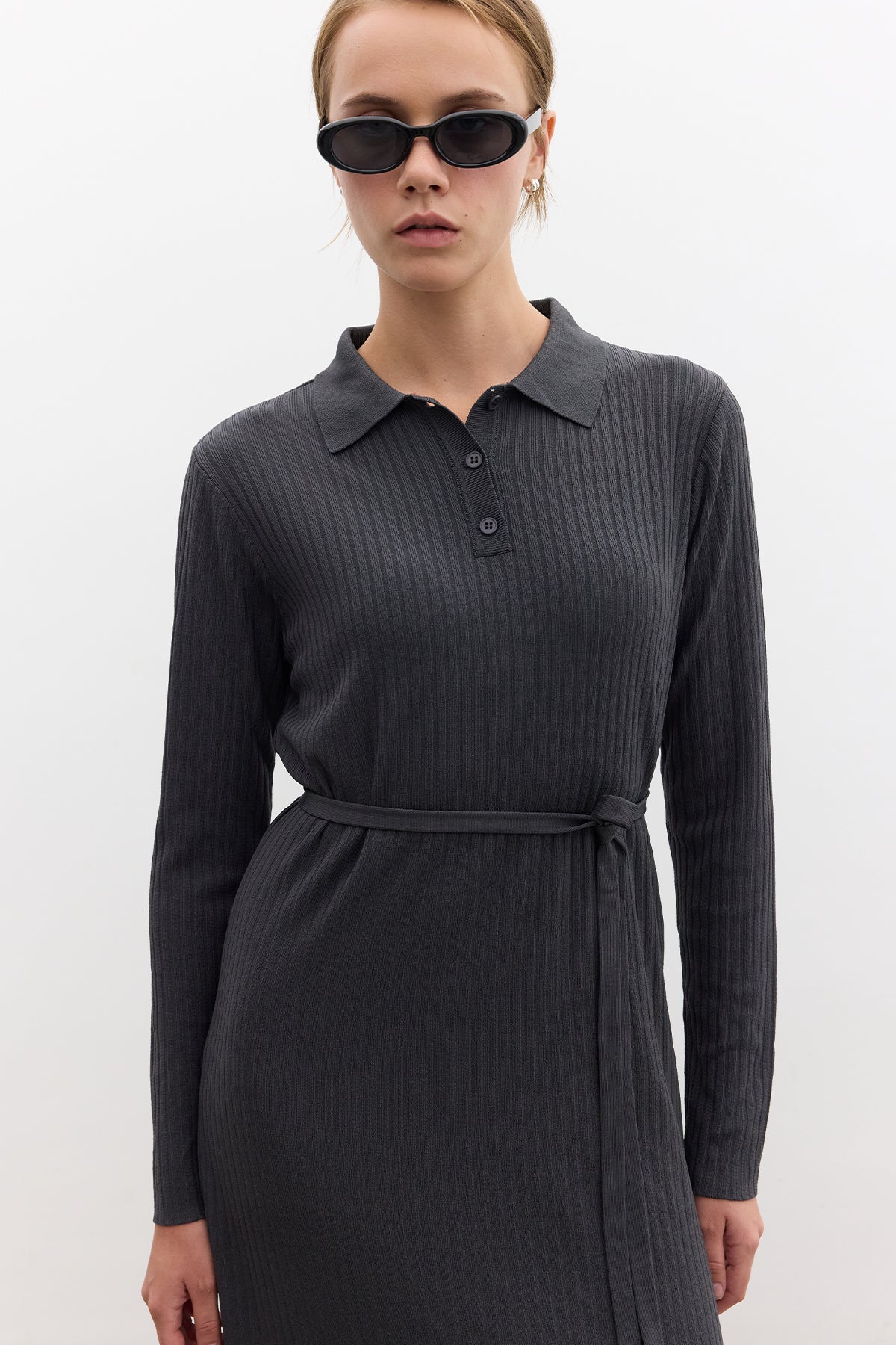 Collared Knit Dress Anthracite