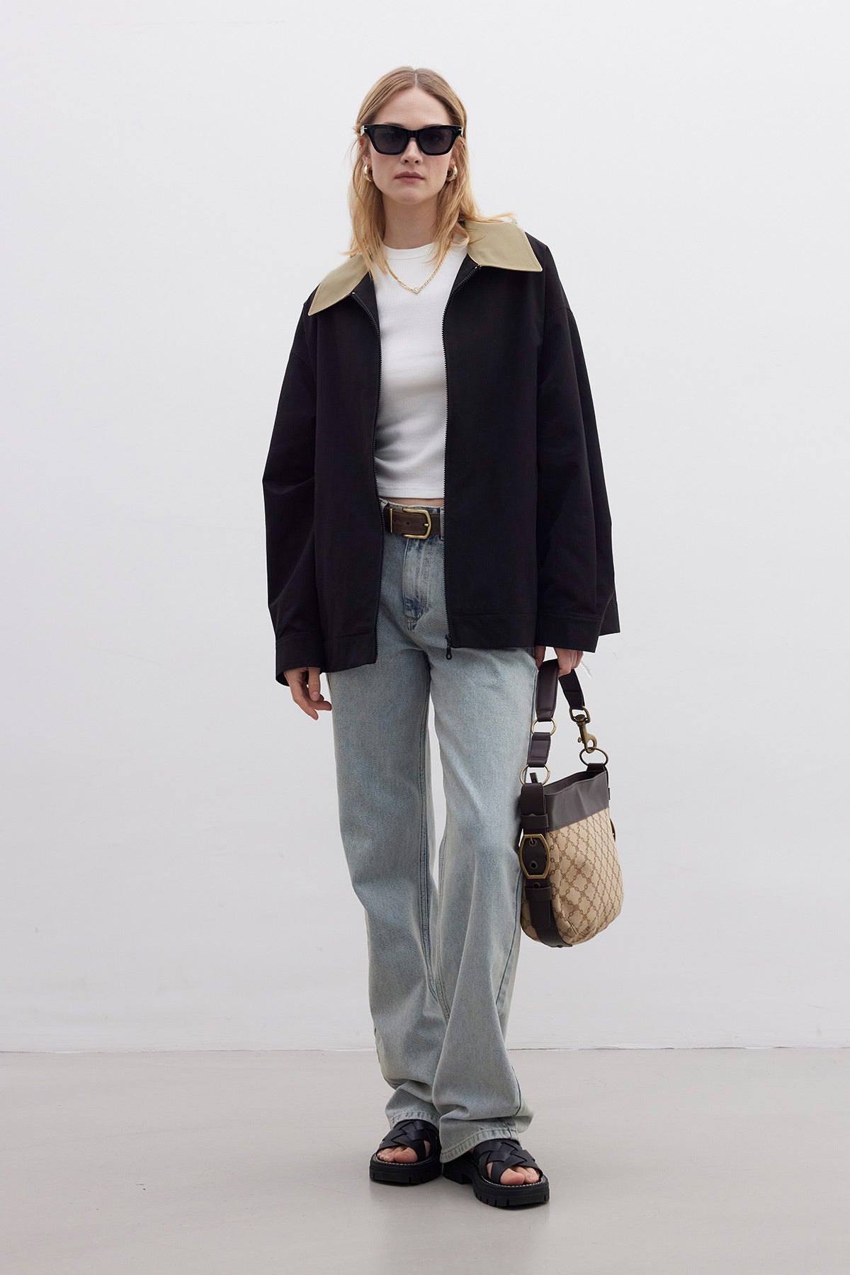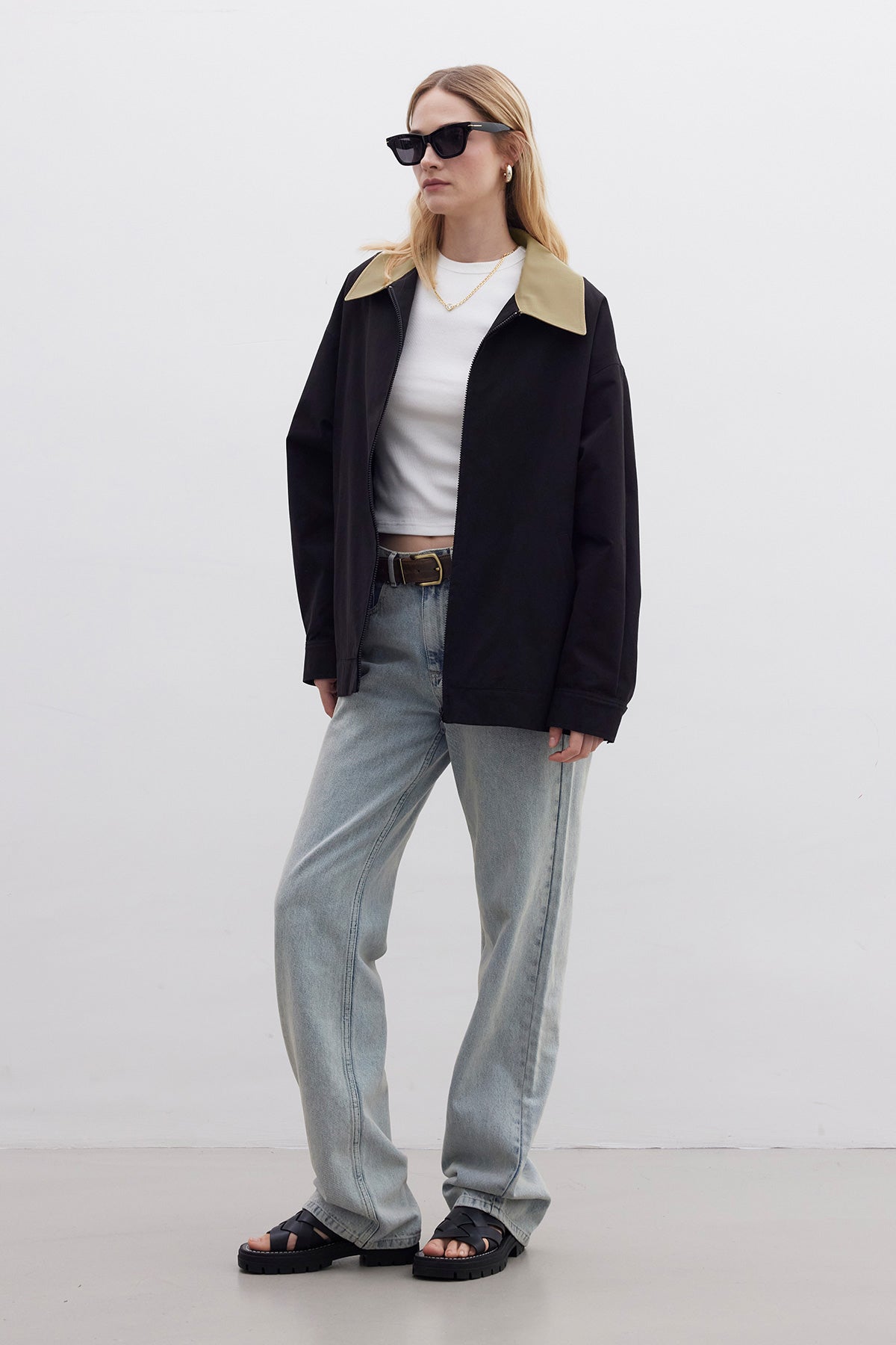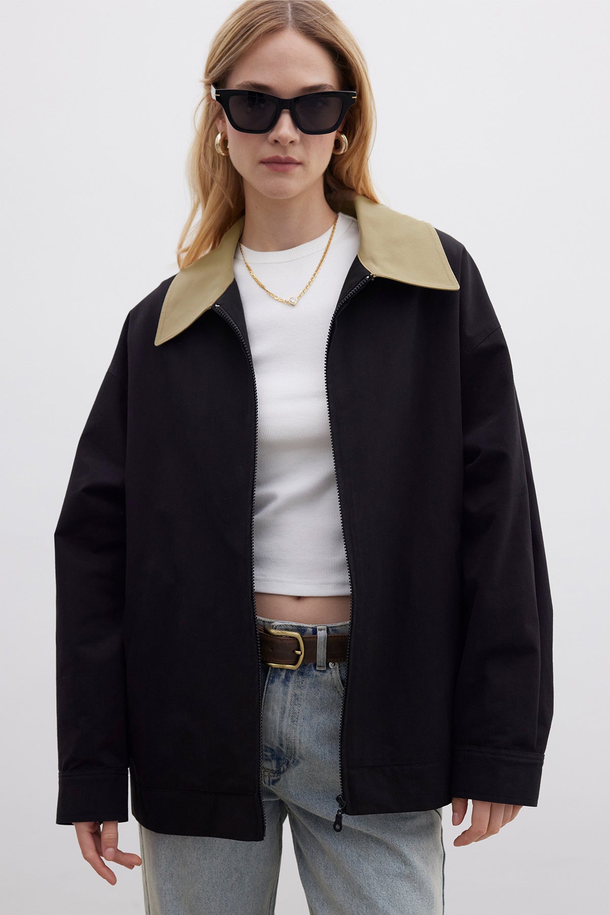 Contrast Collar Gabardine Jacket Black