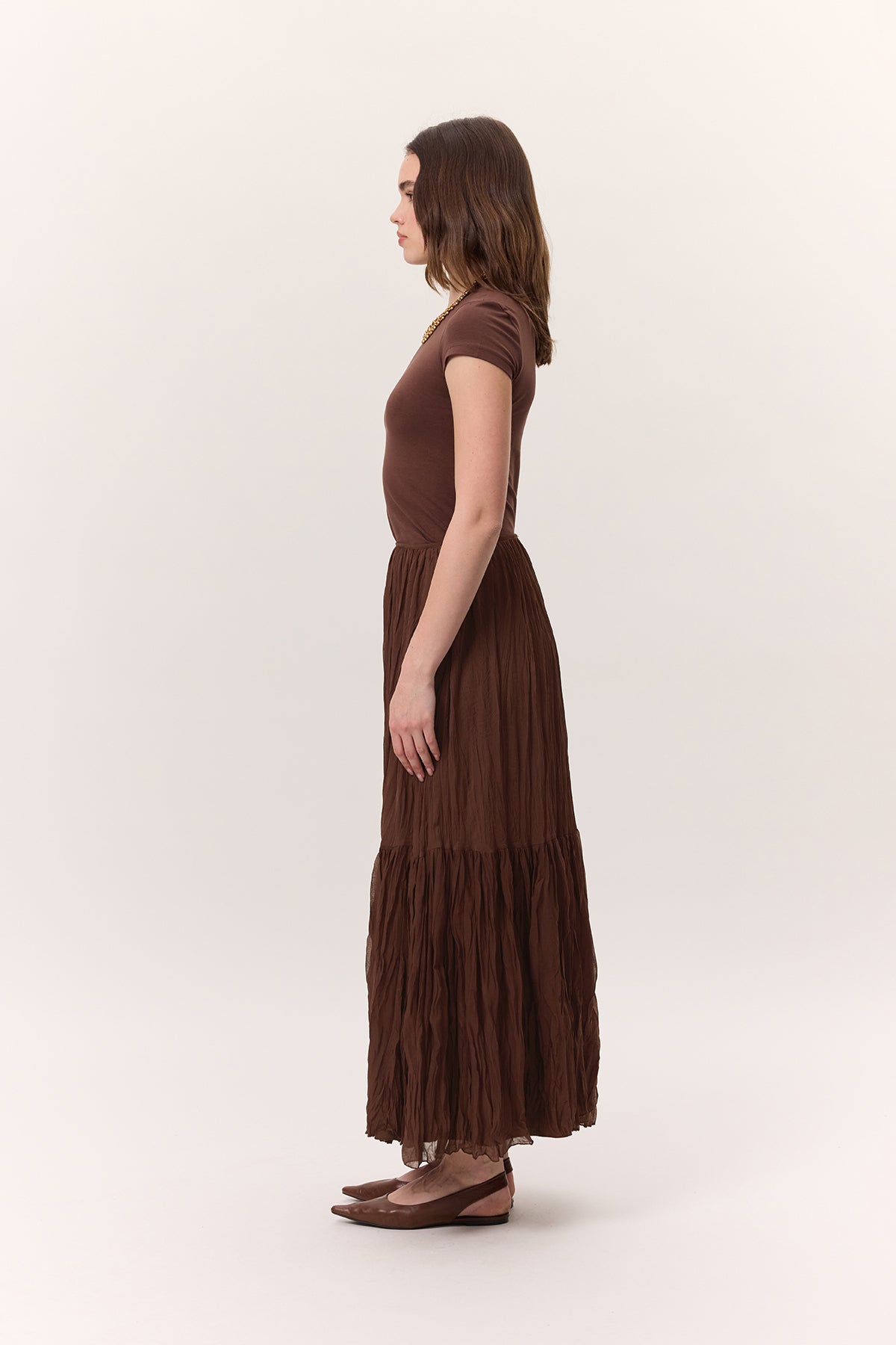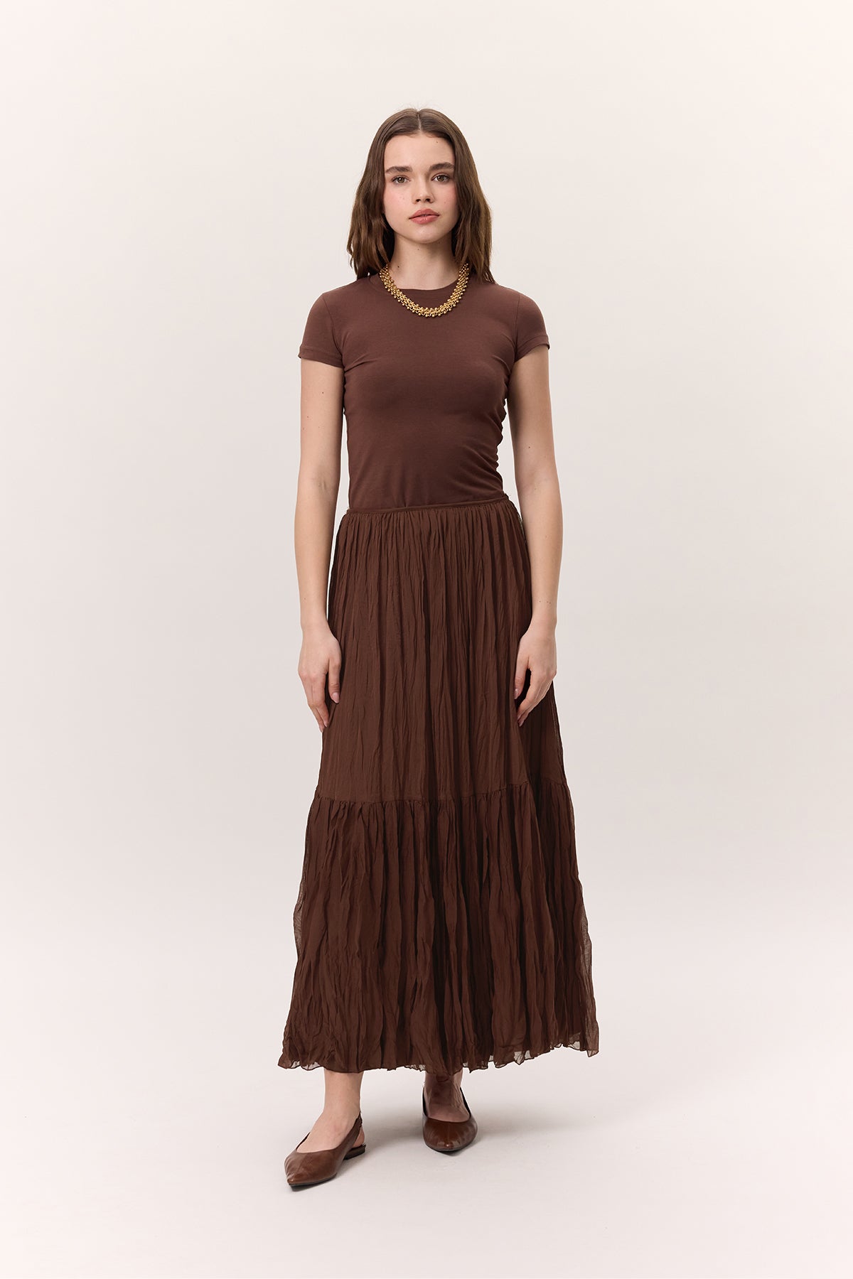Crushed Pleated Maxi Skirt Brown