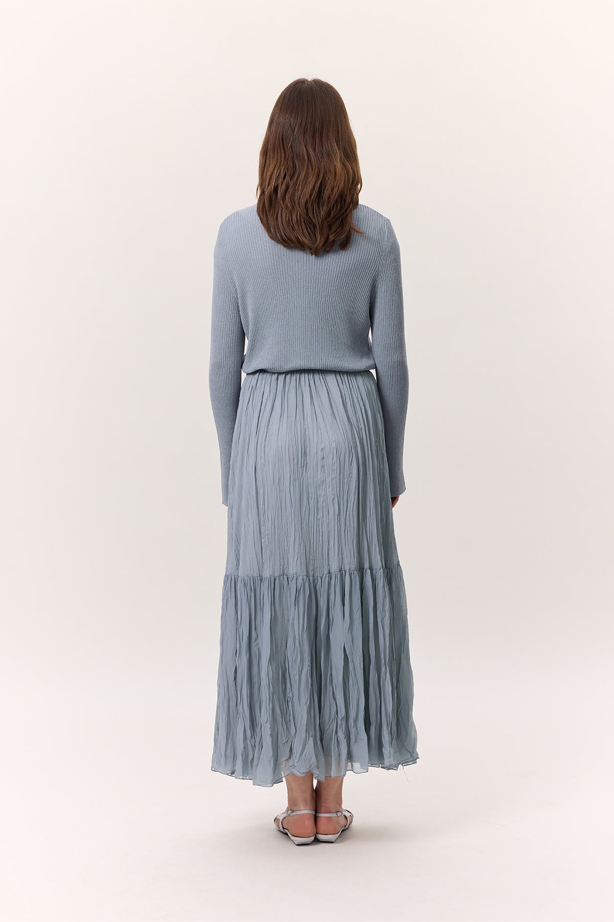 Crushed Pleated Maxi Skirt Blue