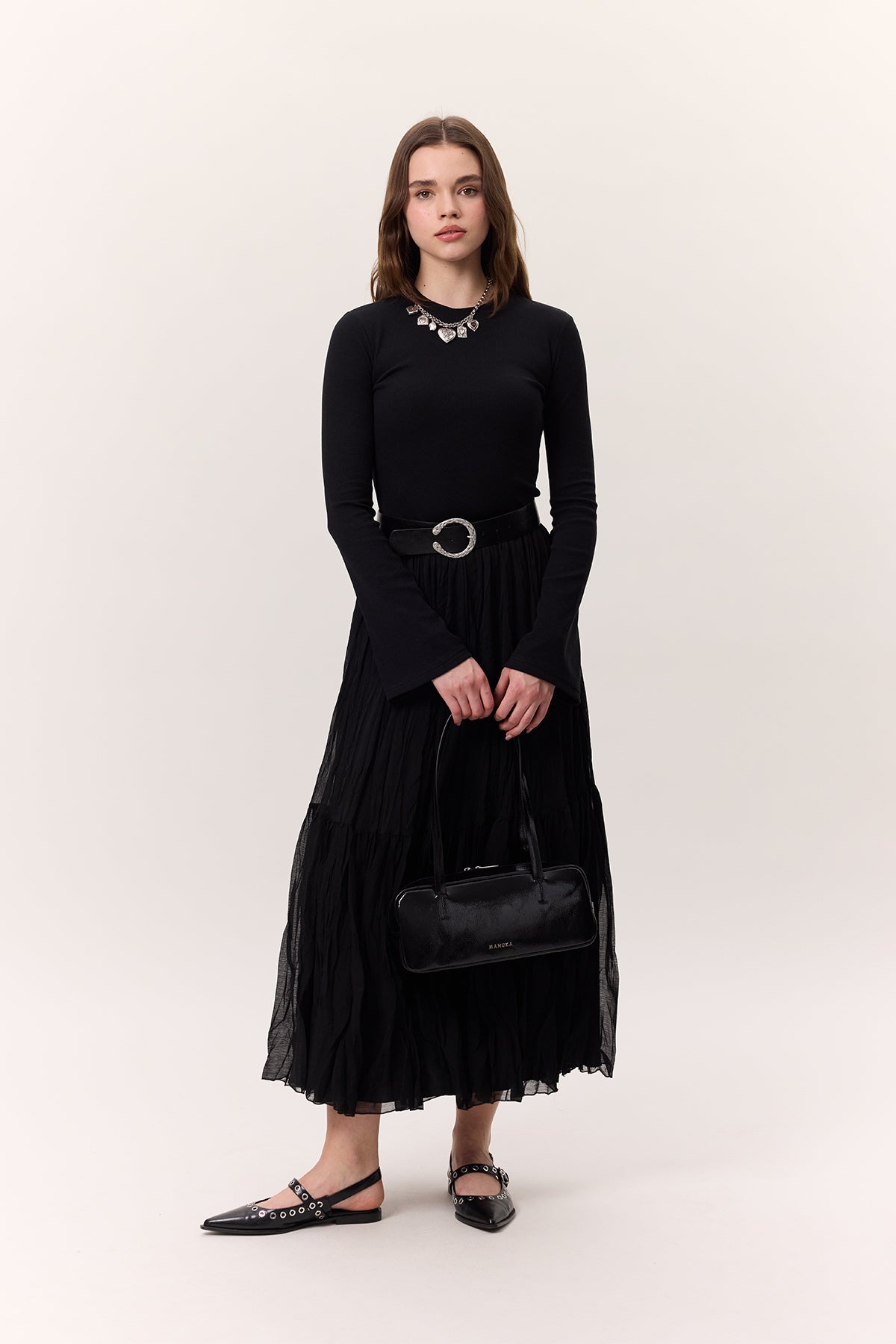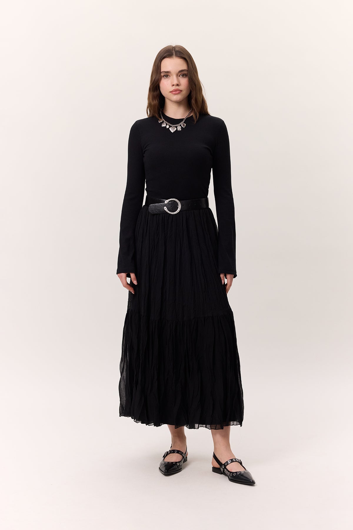 Crushed Pleated Maxi Skirt Black
