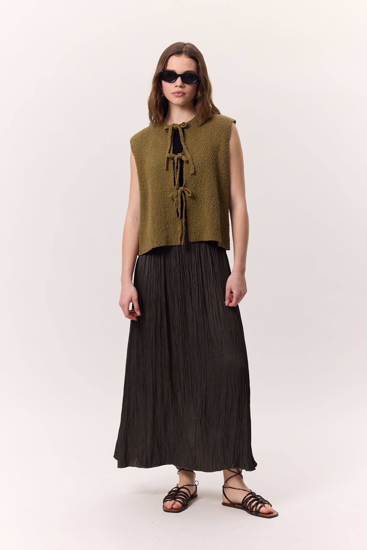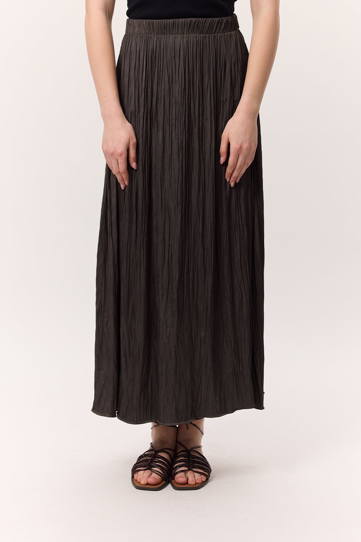 Crush Satin Skirt Brown