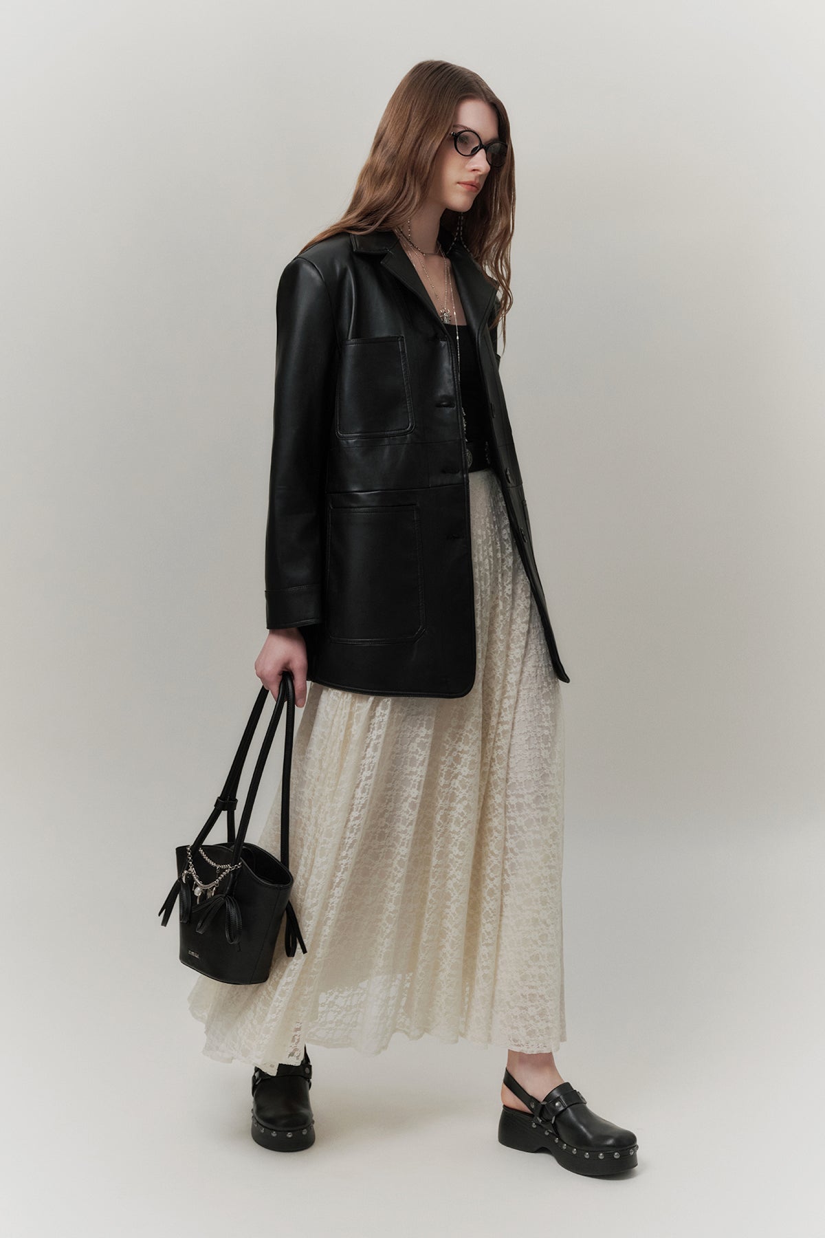 Lace Pleated Skirt Ecru
