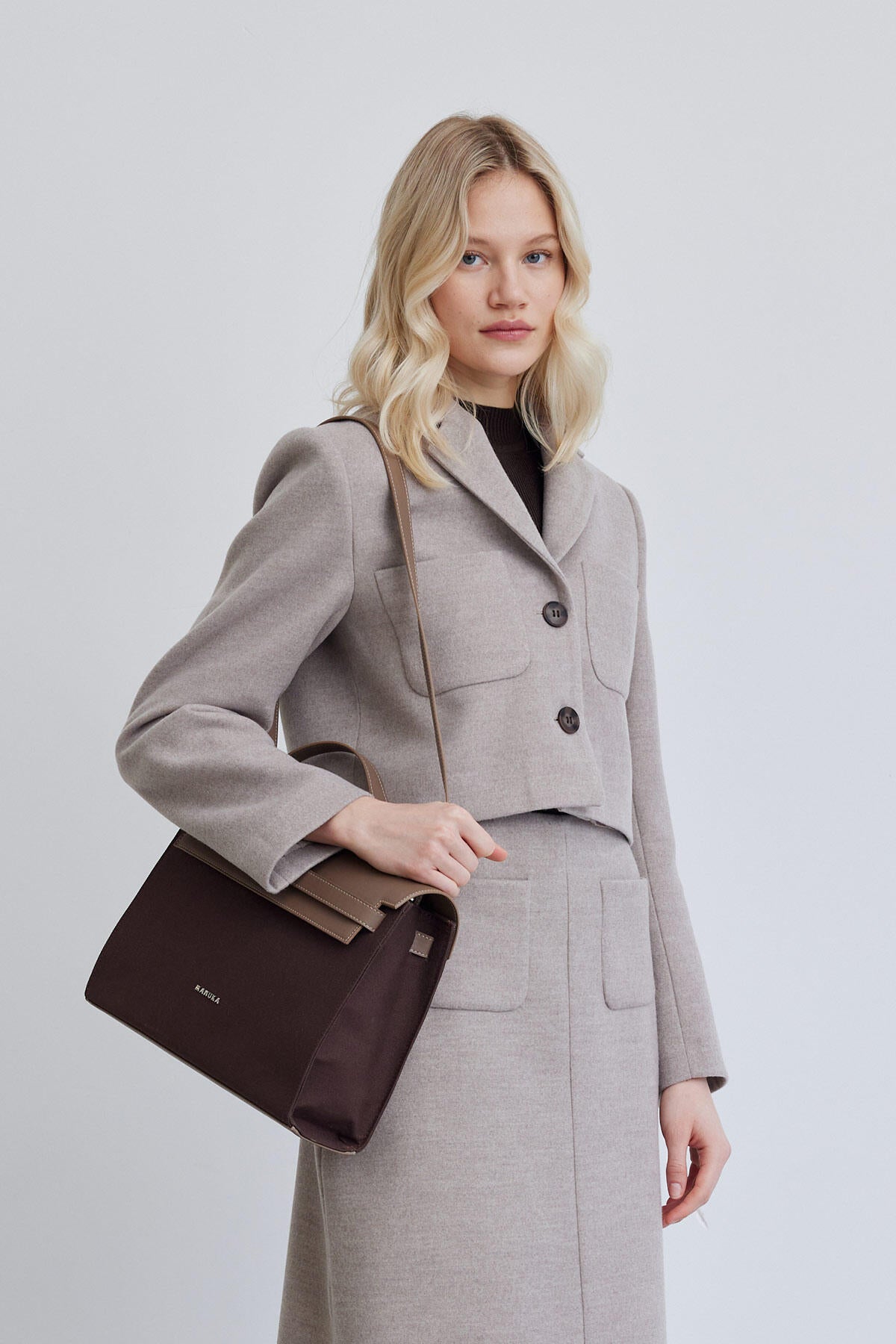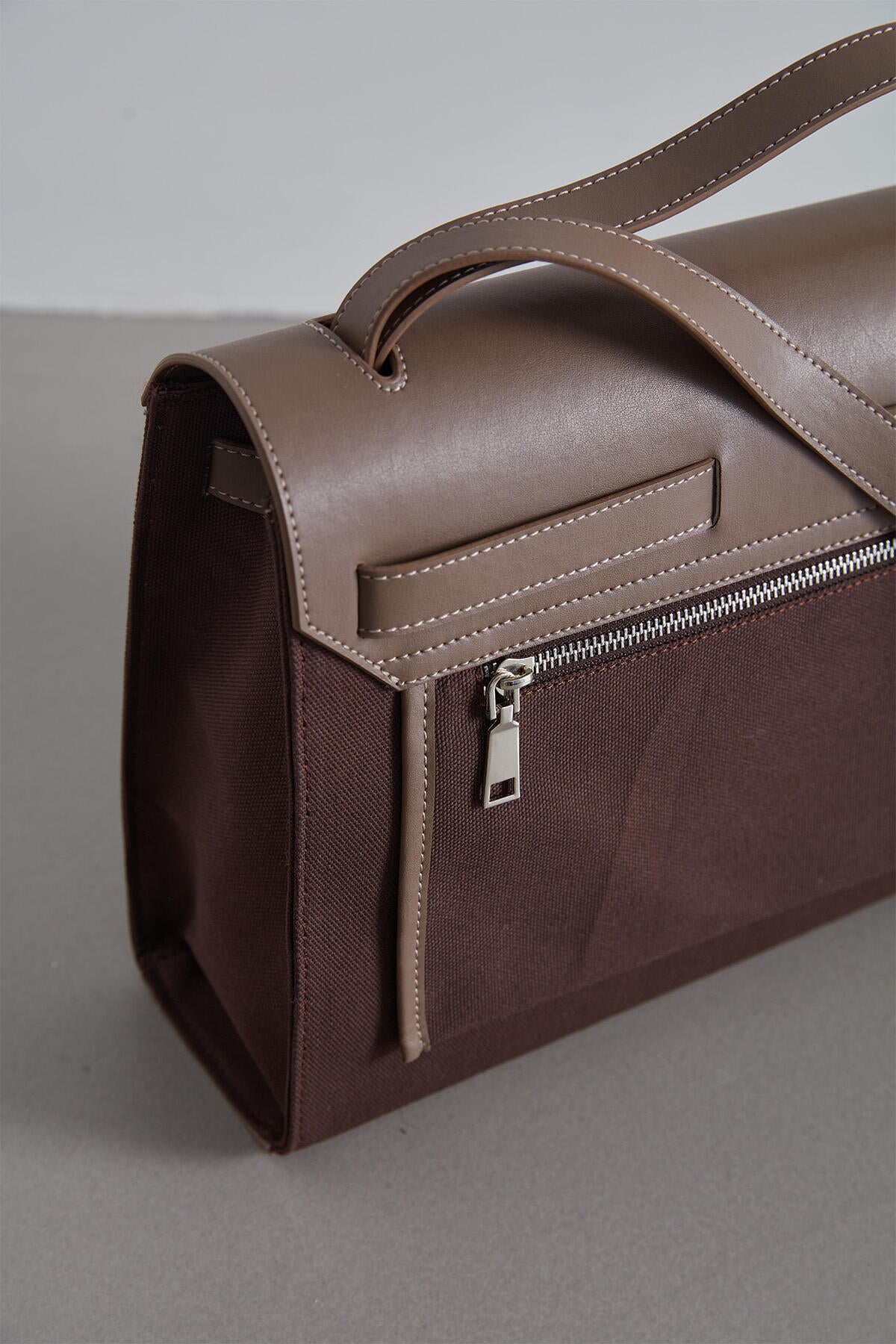 Faux Leather Detailed Canvas Bag Dark Brown