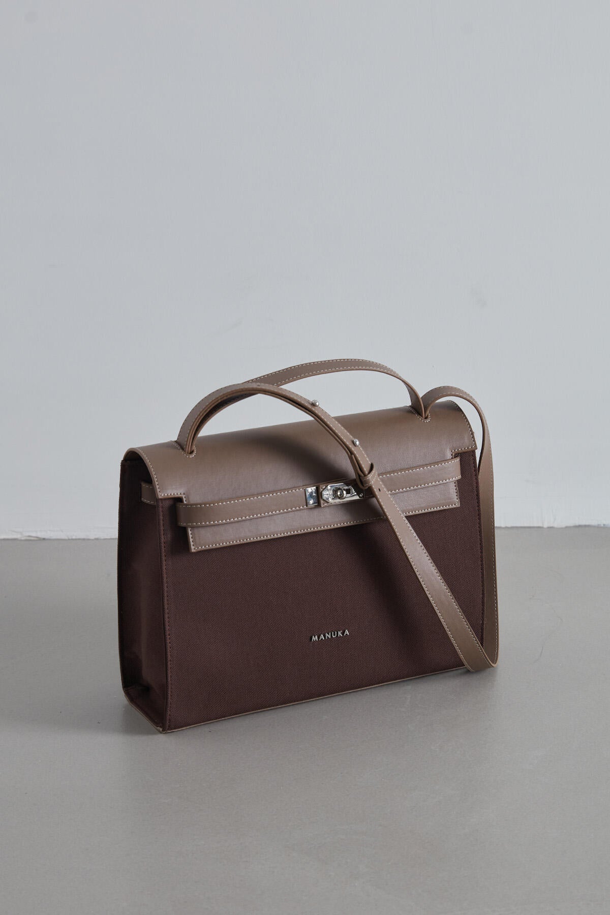 Durability meets sleek design. This bag features a faux leather flap, canvas body, and a secure lock closure for a blend of sophistication and practicality. The back is equipped with a zippered pouch for easy access, while the interior is lined and includes a small zippered pocket for organizing essentials. Adorned with the Manuka logo, it’s the epitome of style meets function.
