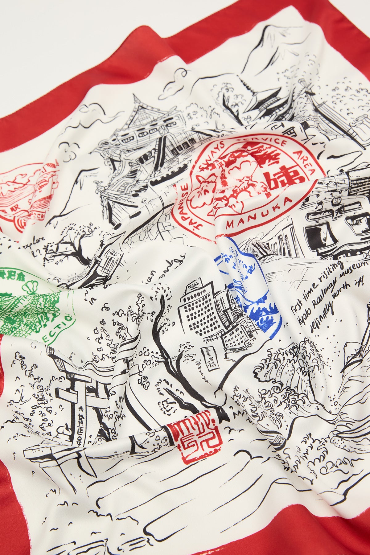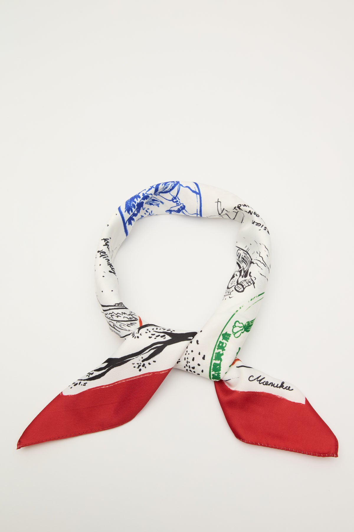 Patterned Satin Neck Scarf Stamp Red