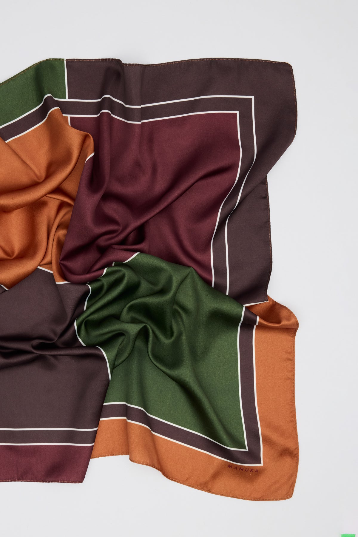 Patterned Mid Size Satin Scarf Nera Burgundy