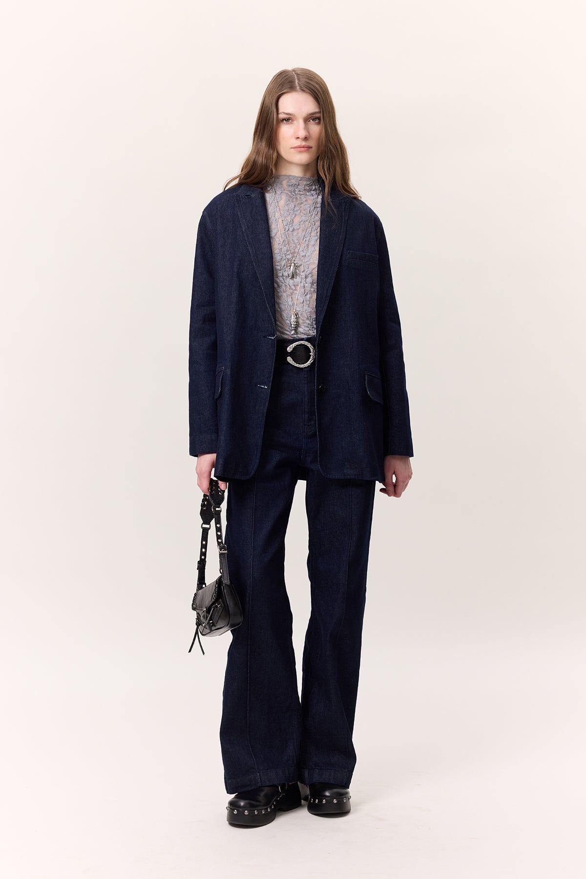 Note: Due to the nature of denim fabric, color may lighten with wear and wash. May transfer onto light-colored garments or surfaces. Wash inside out with similar colors.