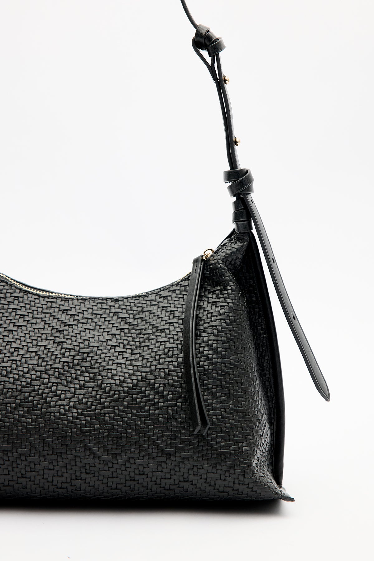 Textured Leather Shoulder Bag Black