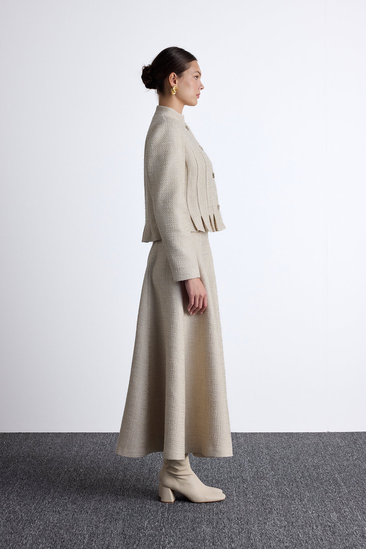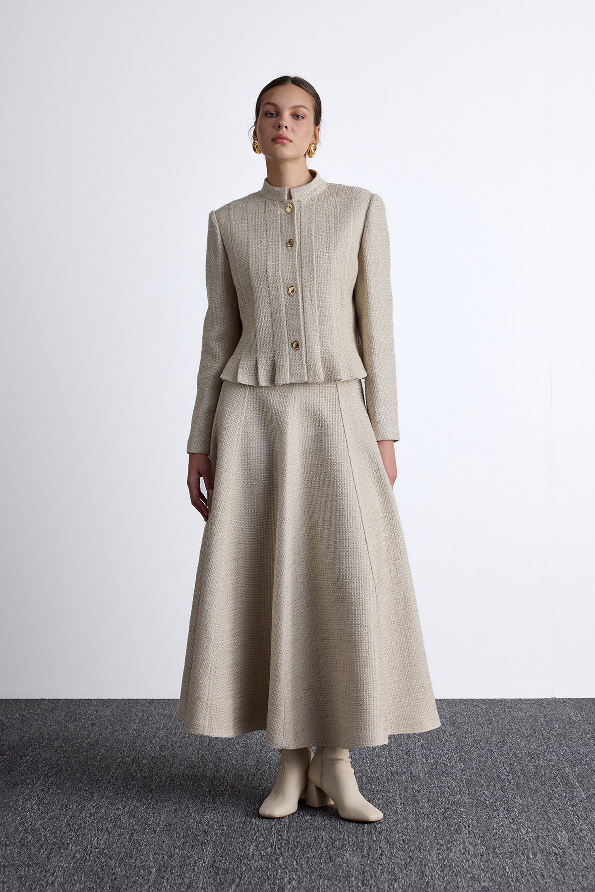 Textured Buttoned Jacket Beige