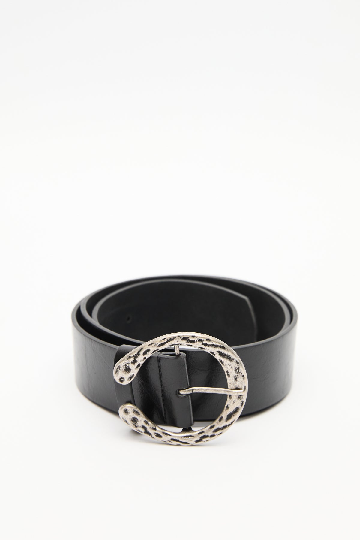 Hammered Buckle Faux Leather Belt Black