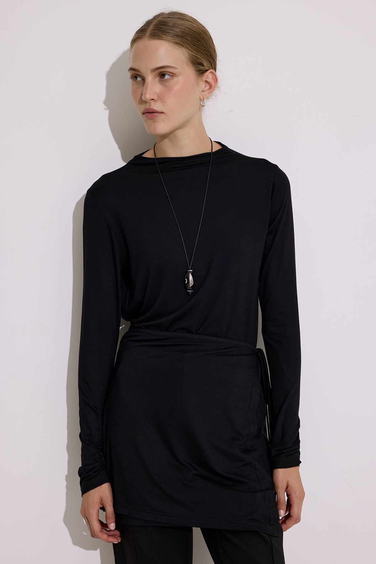 Draped side-tie detail