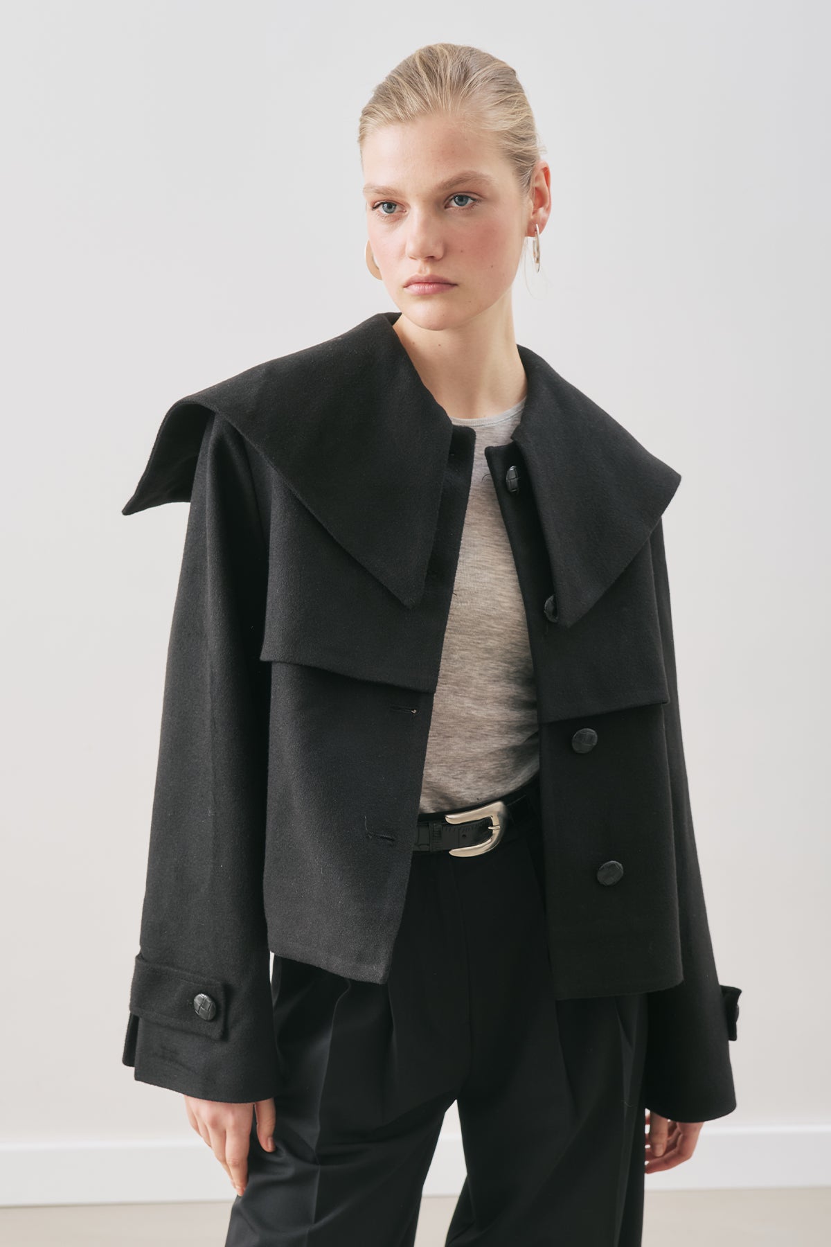 Button-Detail Wool Coat Black