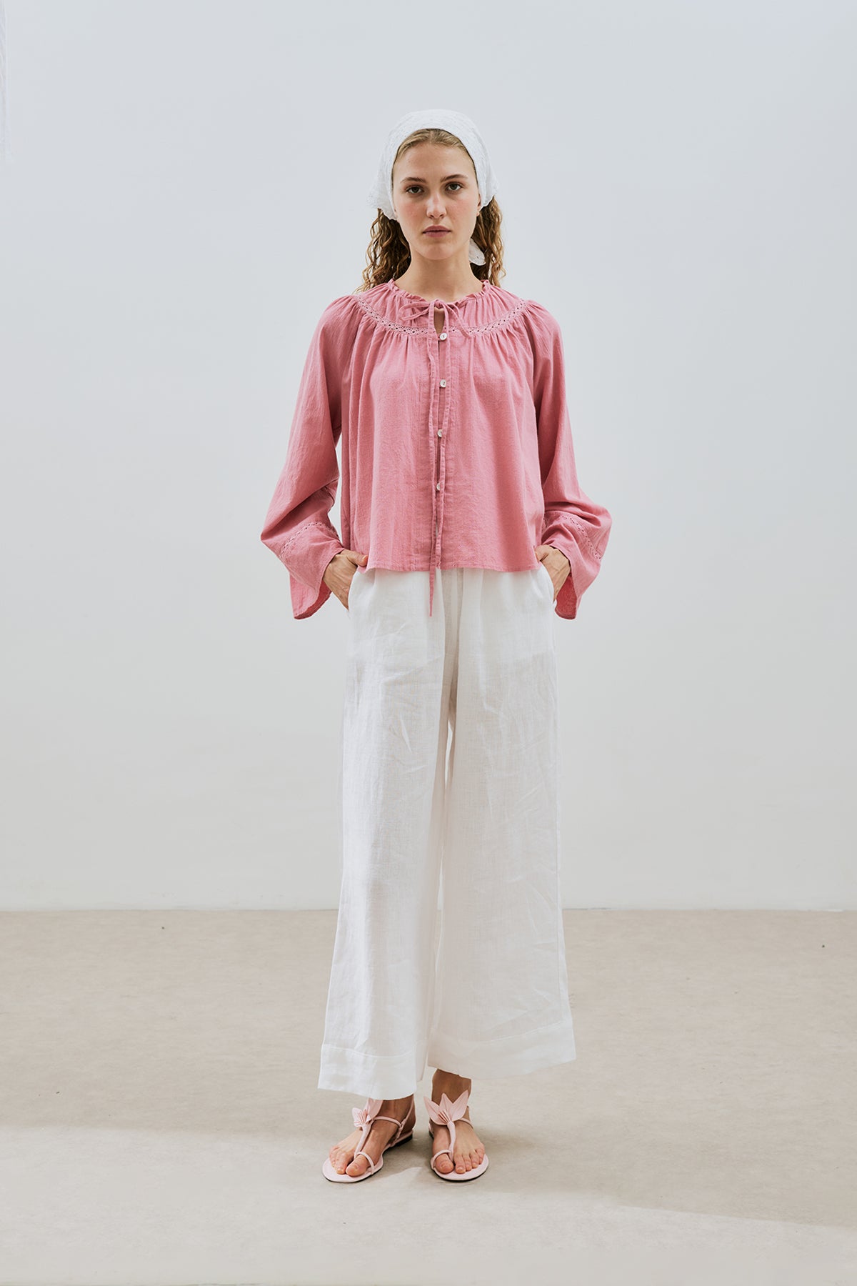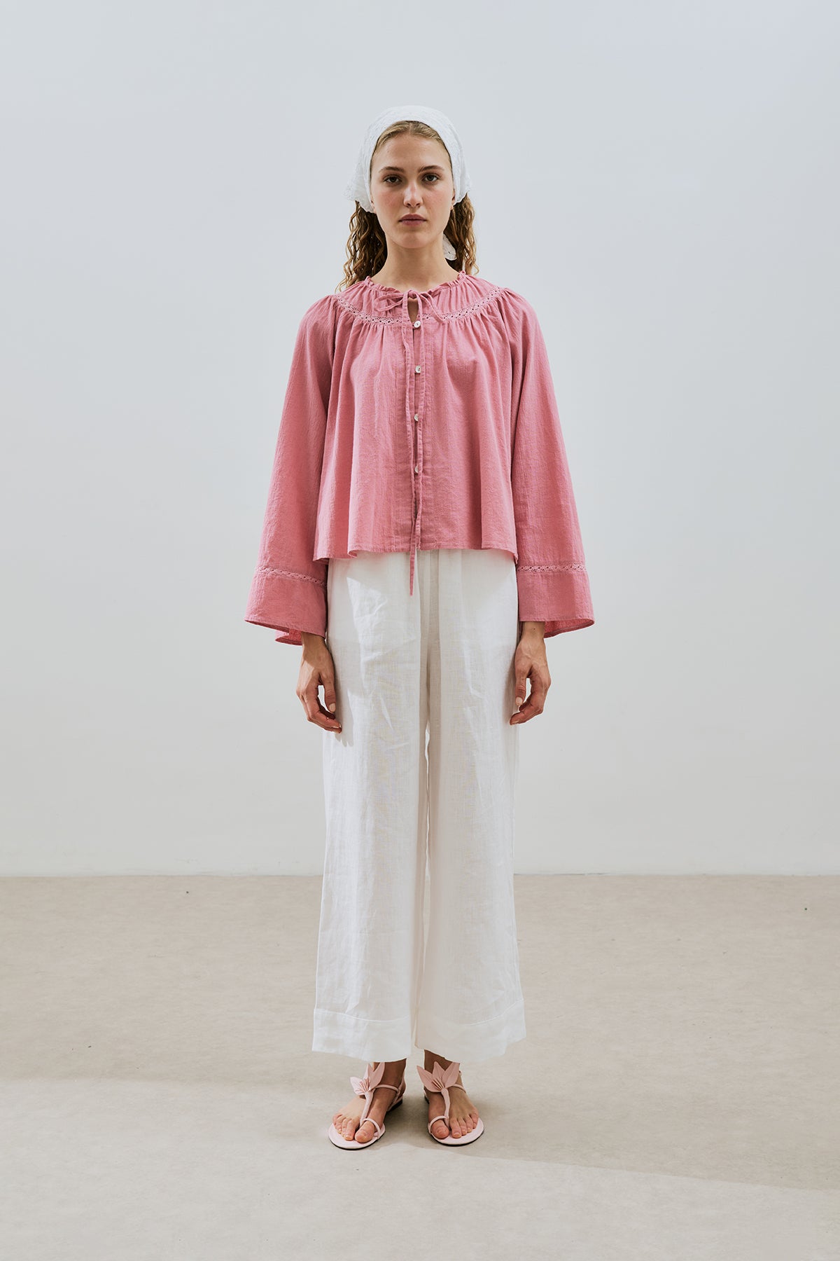 Embroidered Crop Blouse Pink