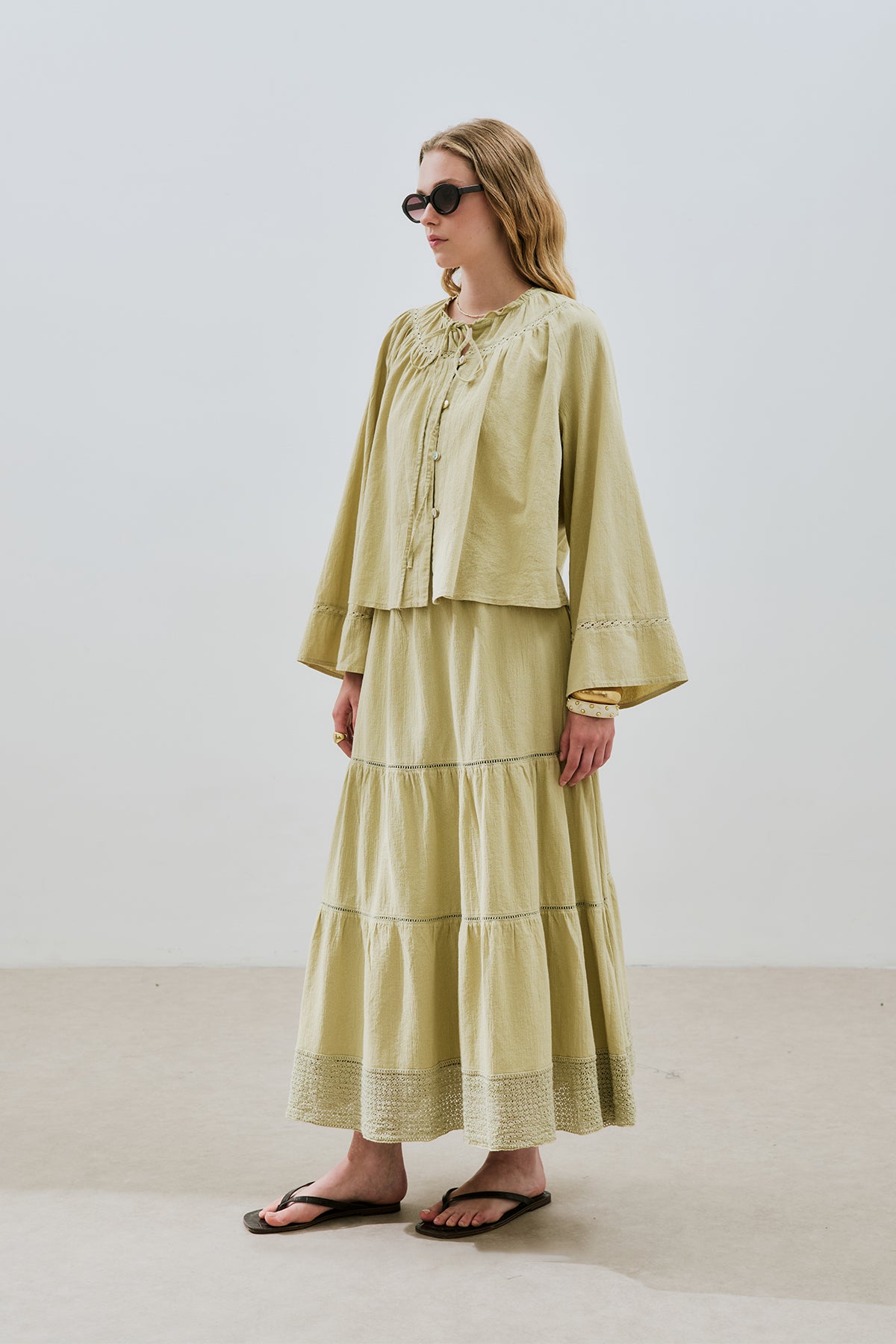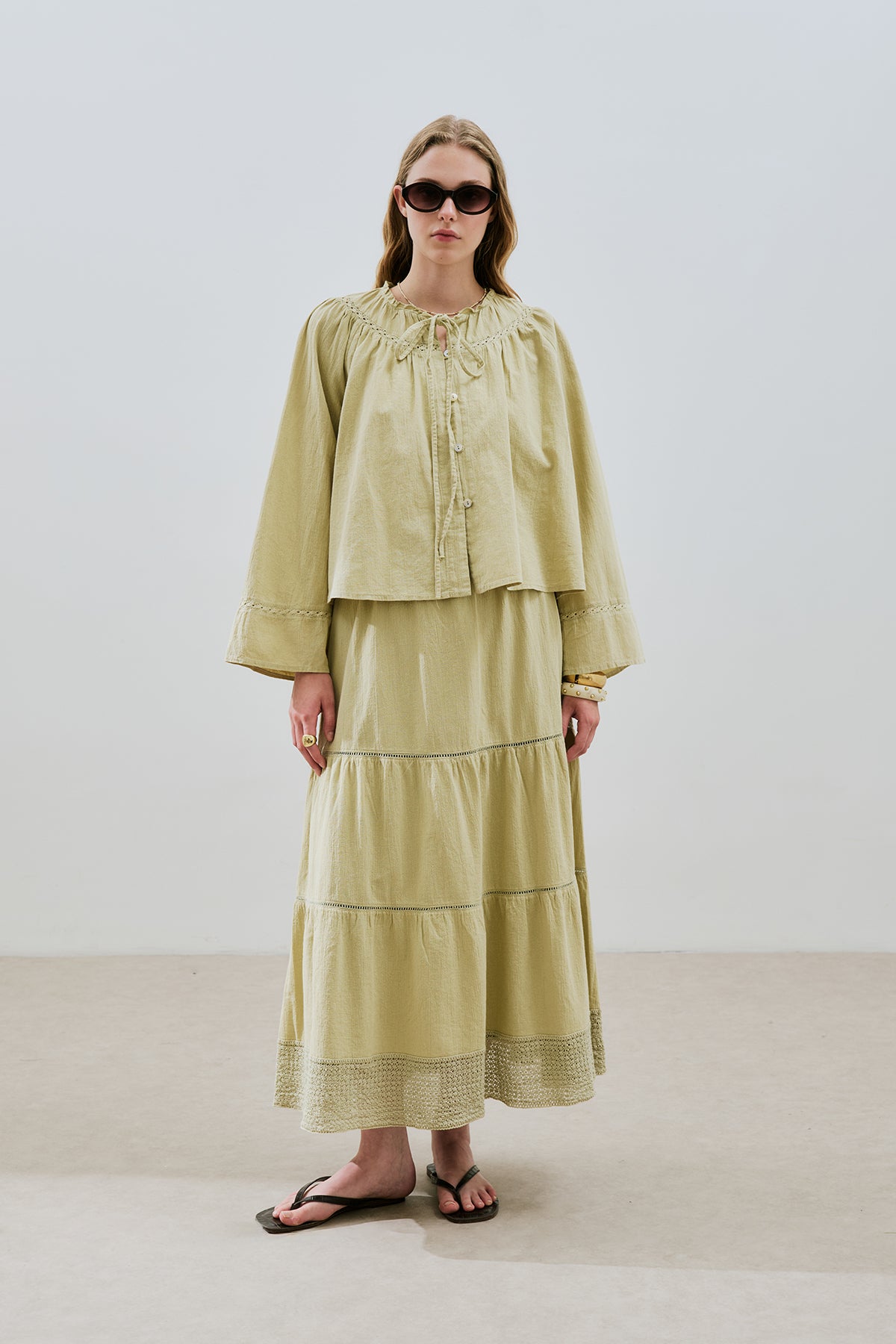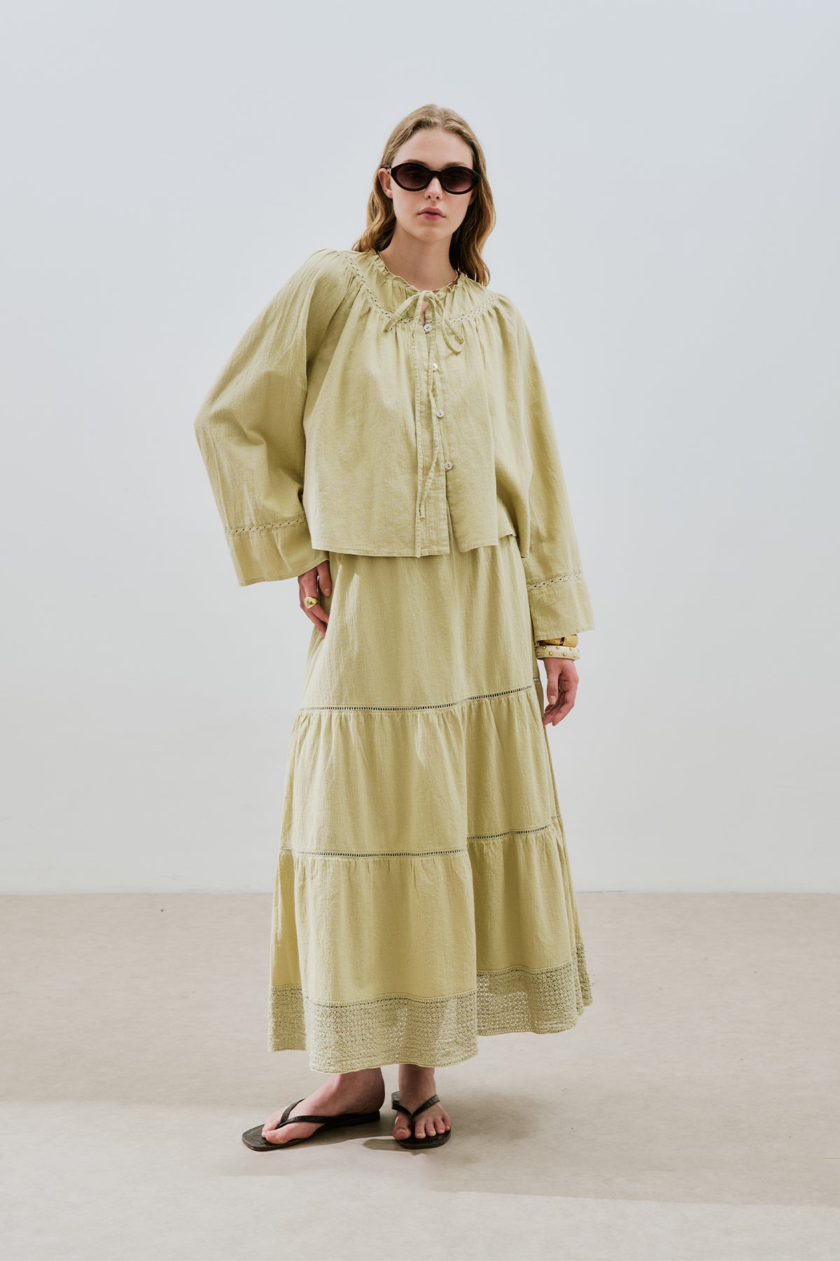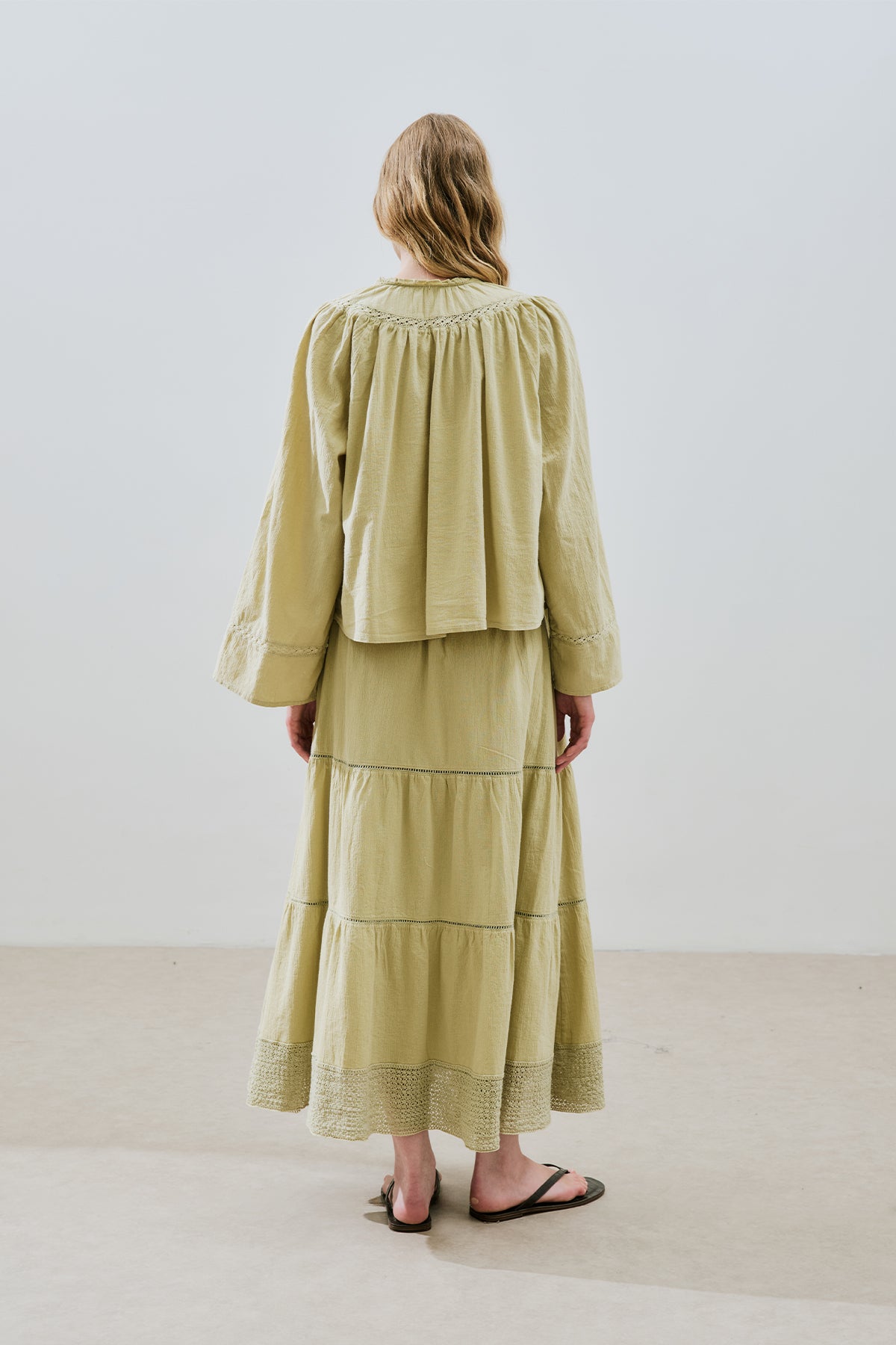Size S/M: Front Length 57 cm, Back Length 56 cm, Hem 70 cm, Sleeve Length 71.5 cm, Chest 63.5 cm