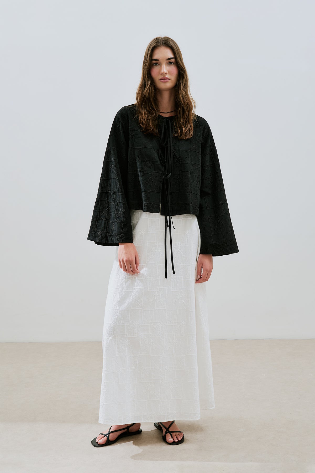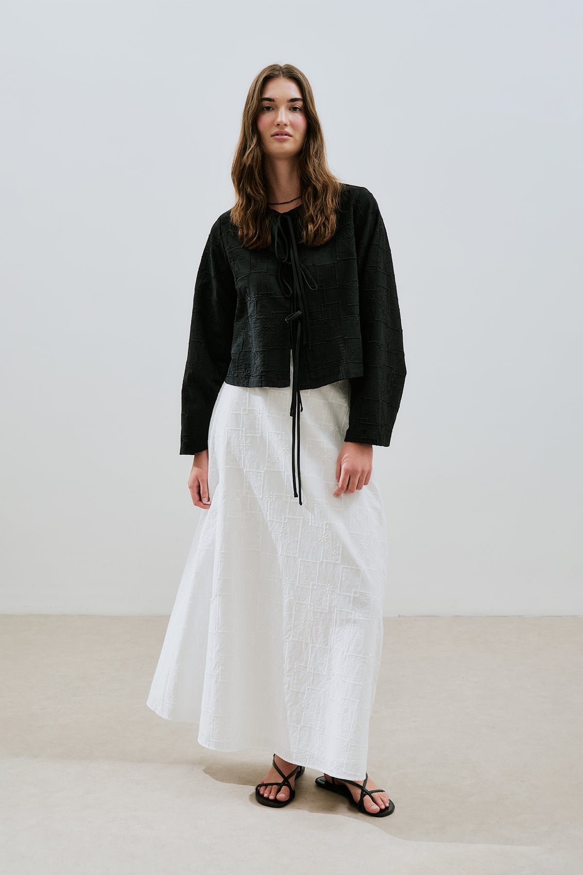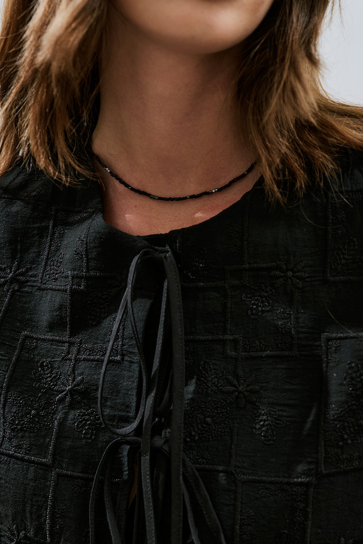 Embroidered Tie Blouse Black