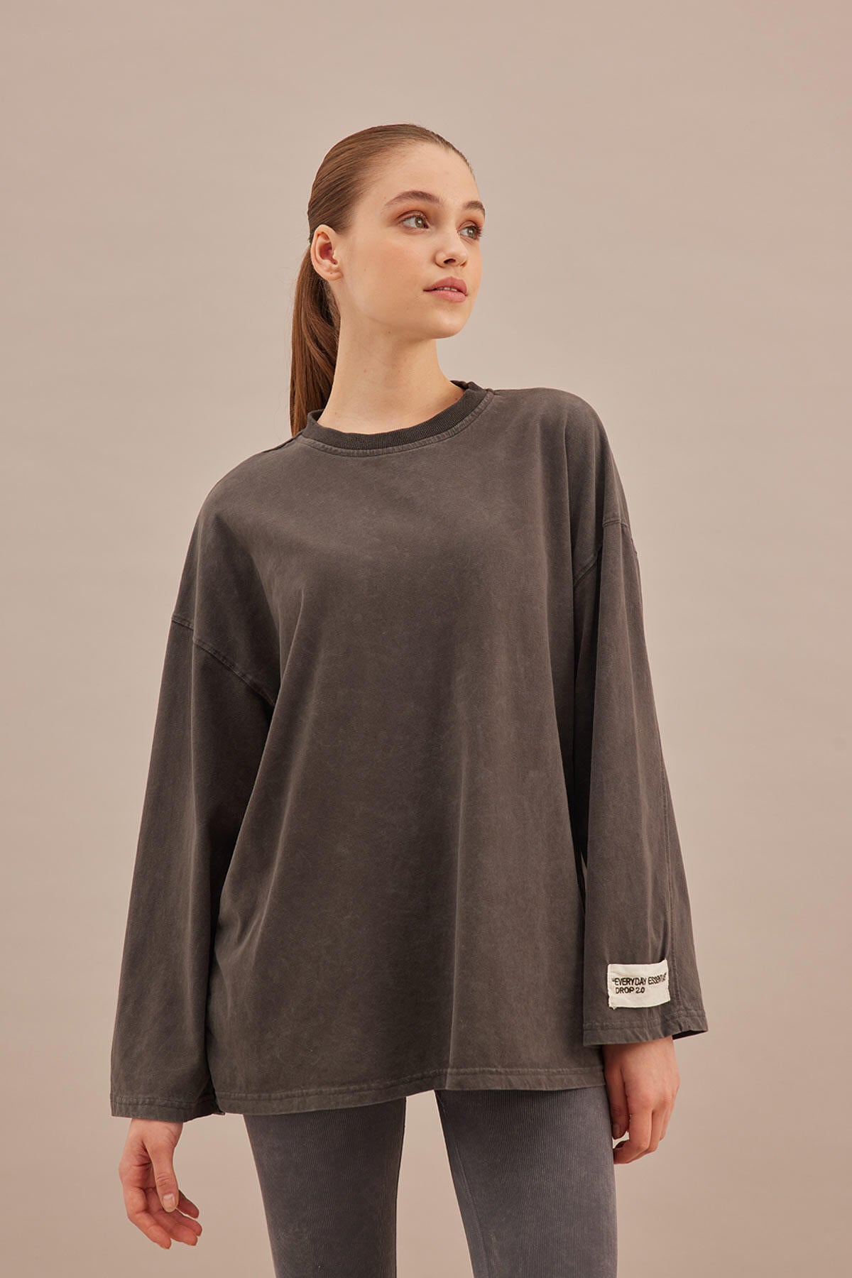 Faded Effect Oversize Sweatshirt Anthracite