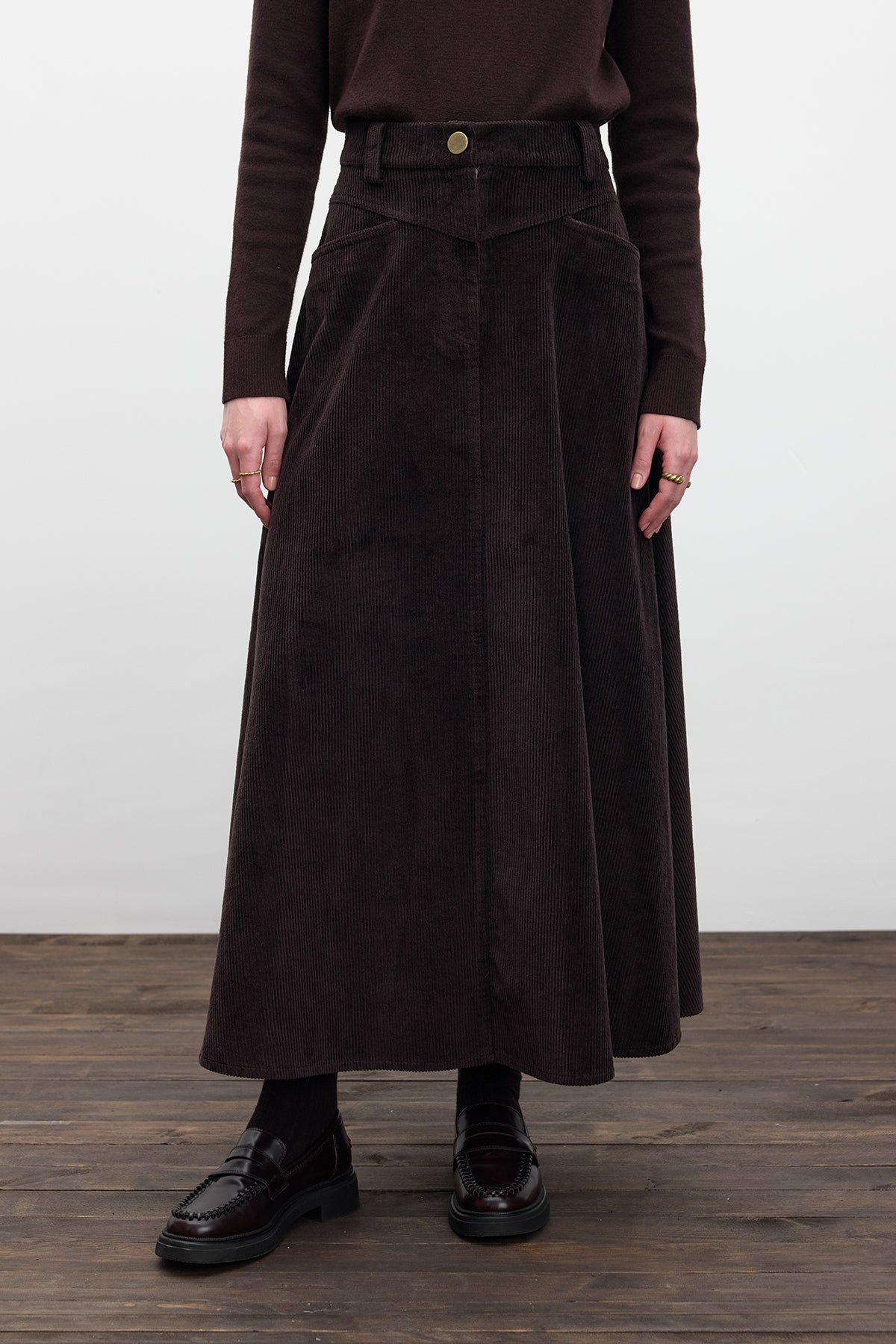 Corduroy Maxi Skirt Dark Brown