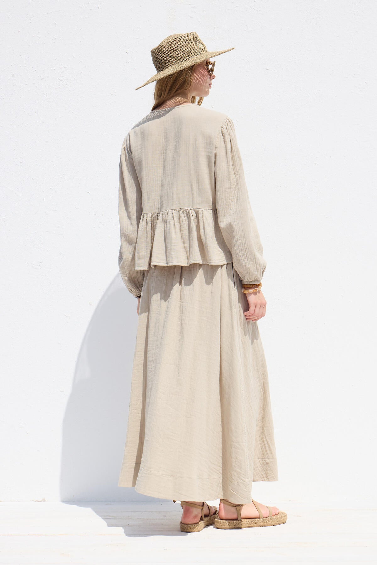 Wide Cut Muslin Skirt Sand
