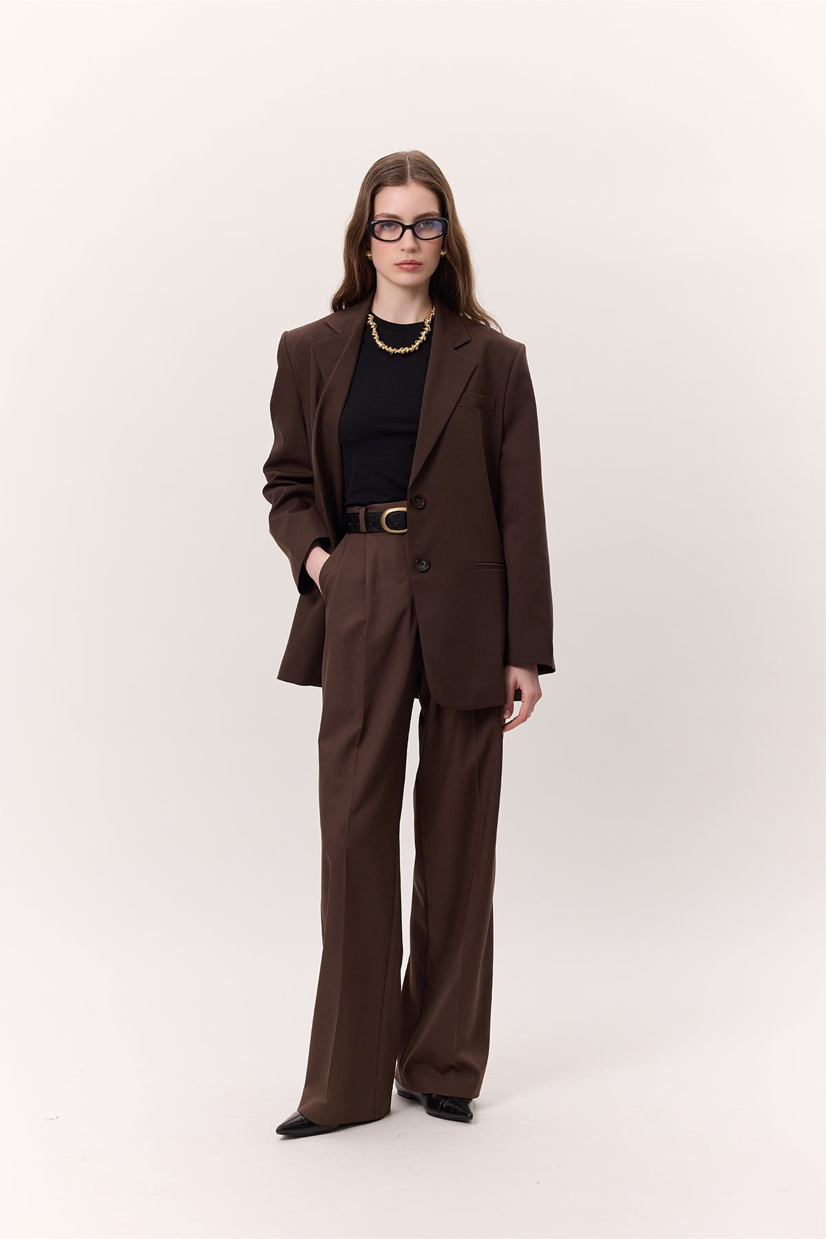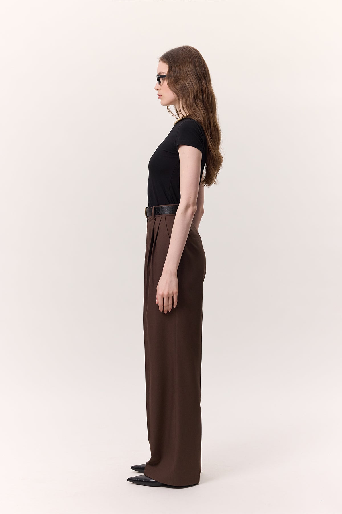 Wide-Leg Palazzo Trousers Brown