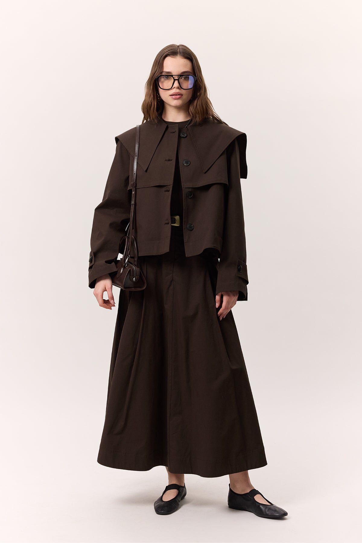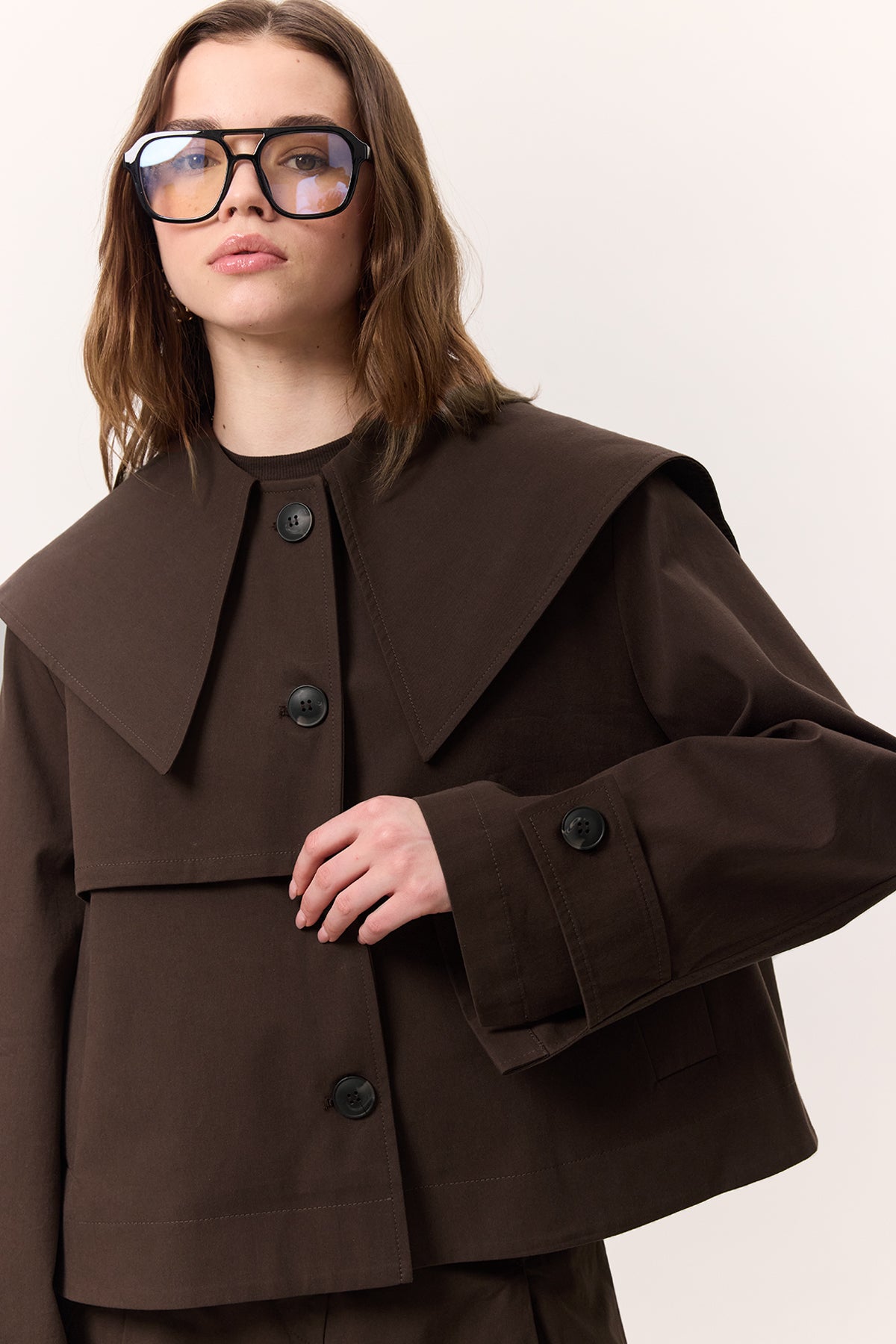 Wide Collar Gabardine Jacket Brown