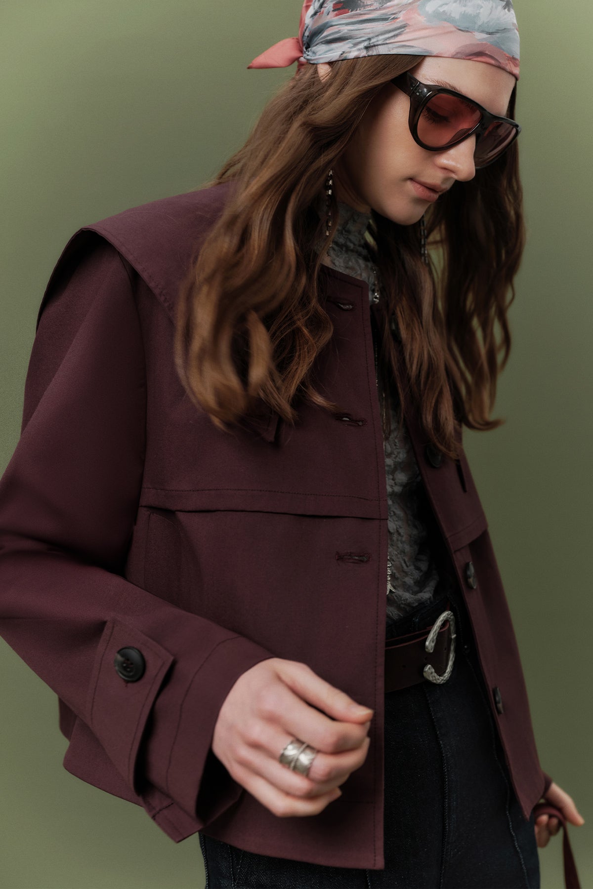 Wide Collar Gabardine Jacket Damson