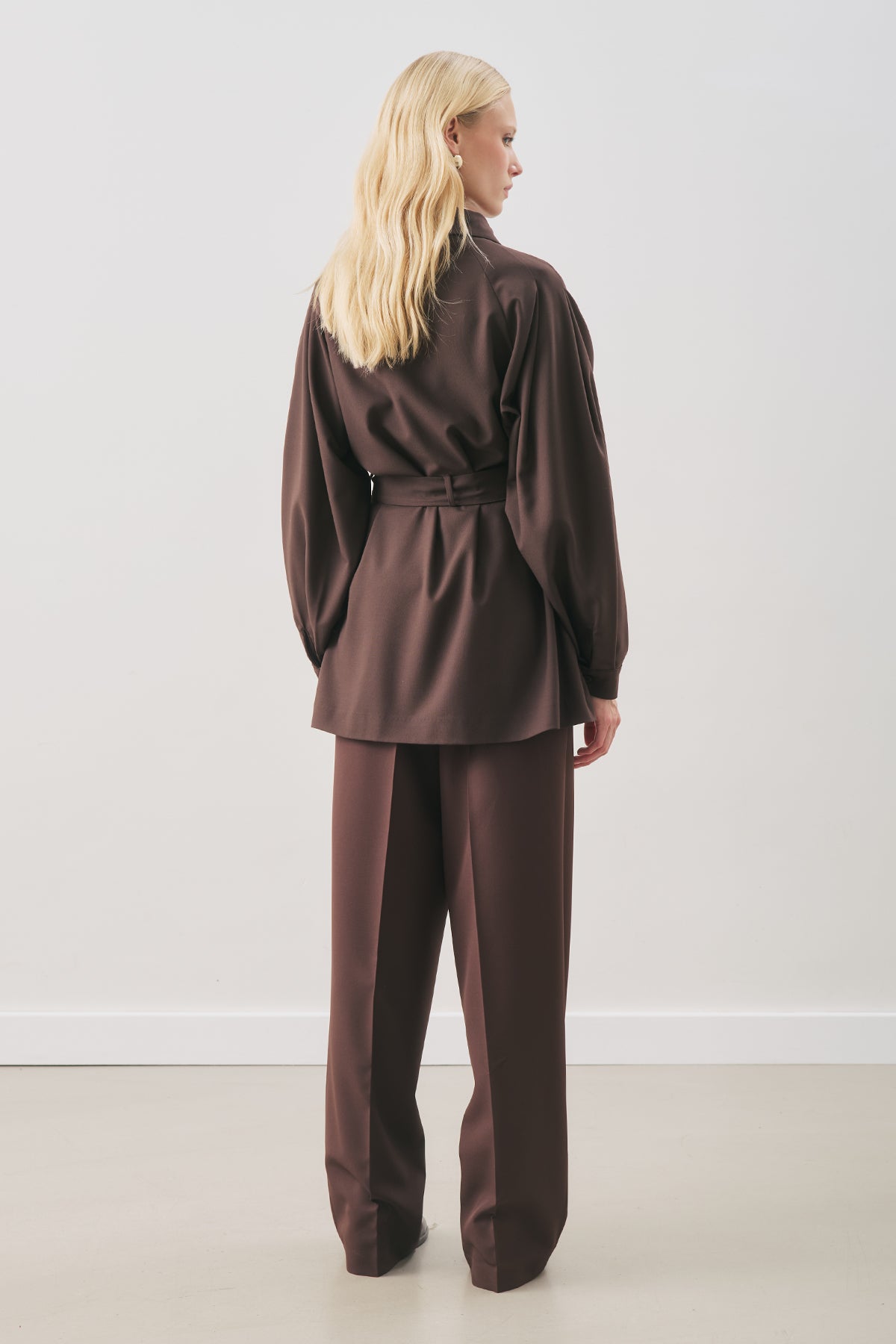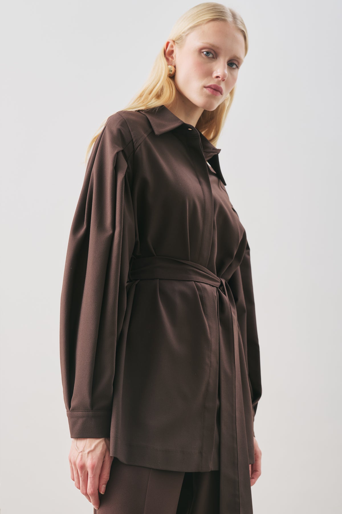 Belted Wide-Sleeve Shirt Dark Brown